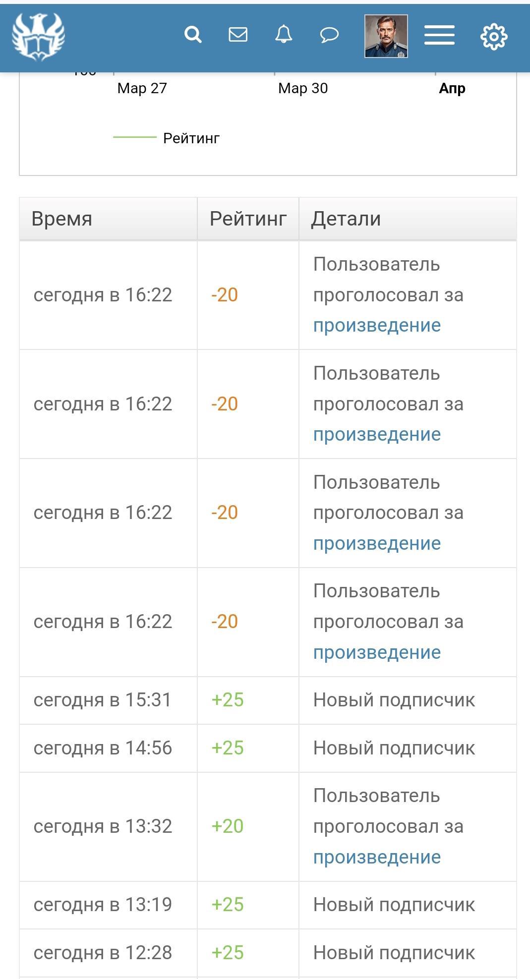 Автор: Григорий ГрошевЗаранее прошу у всех прощения за навязчивость, третья запись за два дня. Просто хочу рассказать любопытную ситуацию. Совершенно случайно зашёл посмотреть рейтинг - и что я вижу.
