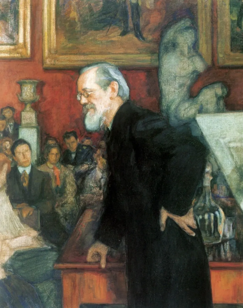 В самом деле, в течение всей истории искусств портрет — именно потому, что он основан на строгом изображении натуры, на выявлении правды, — даже в периоды радикальных изменений художественных направлений и во времена упадка, всегда возвращал искусство на здоровый путь наблюдения, поисков и искреннего изучения натуры и правдивой передачи её.