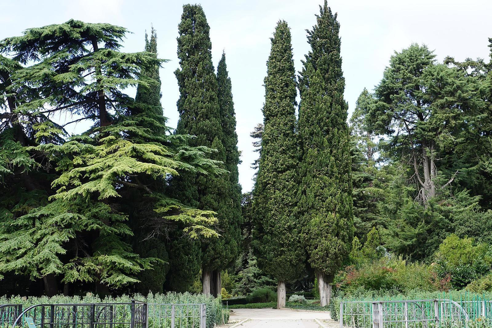 Здесь же высажены и прекрасно себя чувствуют сосны из многих уголков земли, а также огромное разнообразие кипарисов.