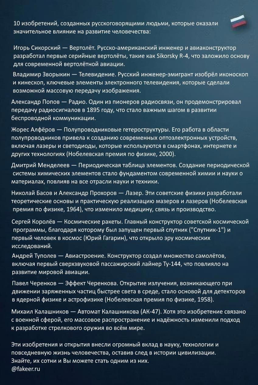 Знайте! Русский, с научной точки зрения, это человек говорящий на русском языке, разделяющий ее культуру... и принятый русским обществом.#Россия #Русский #Россияне #Изобретения