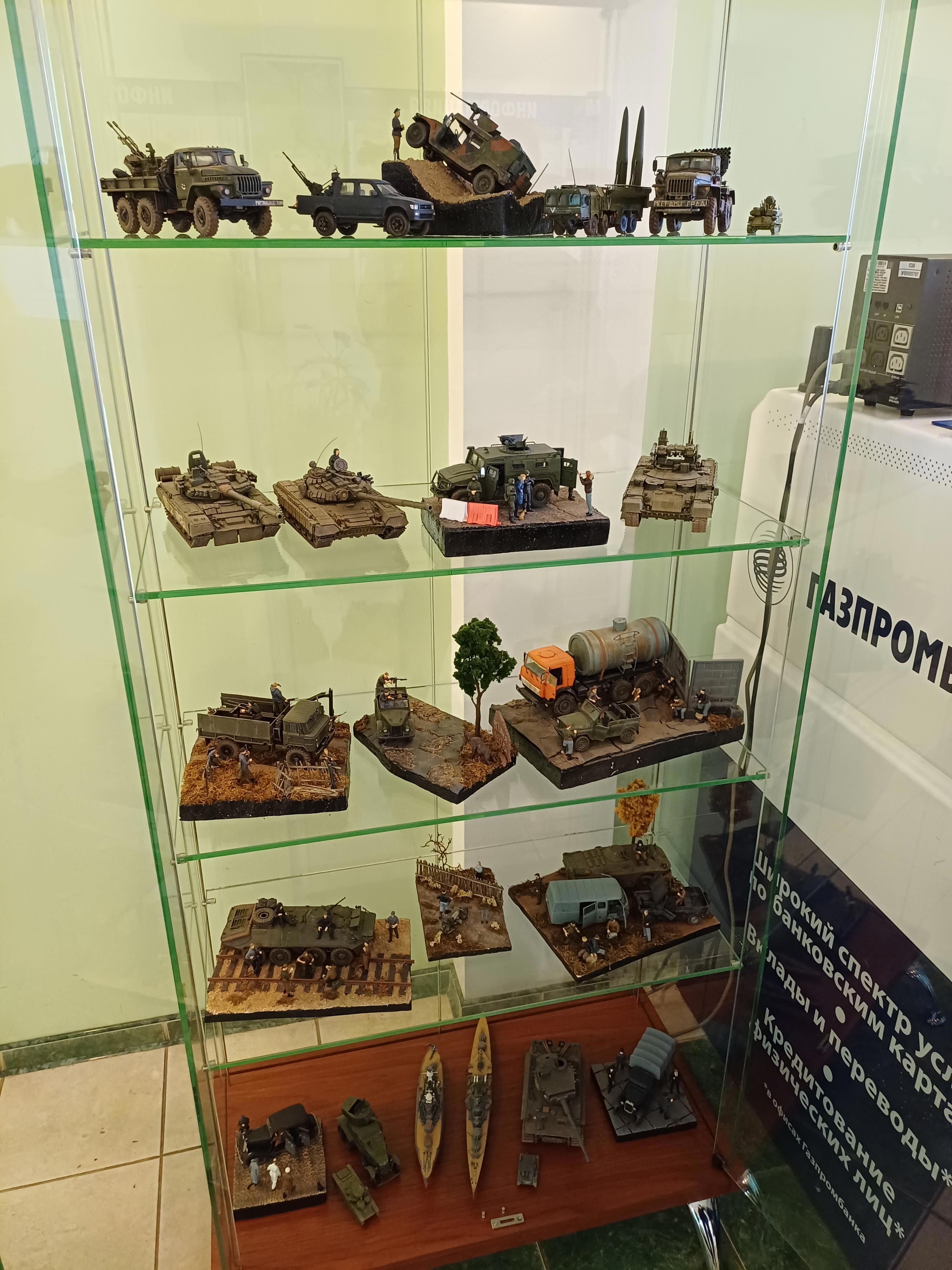 Выставка моделей по современке и диорам по "Осени" благополучно переехала на работу, в специально поставленный для неё шкаф:
