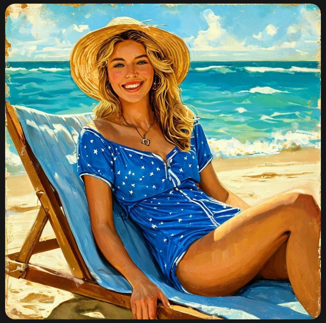На солнечном пляже в июне,