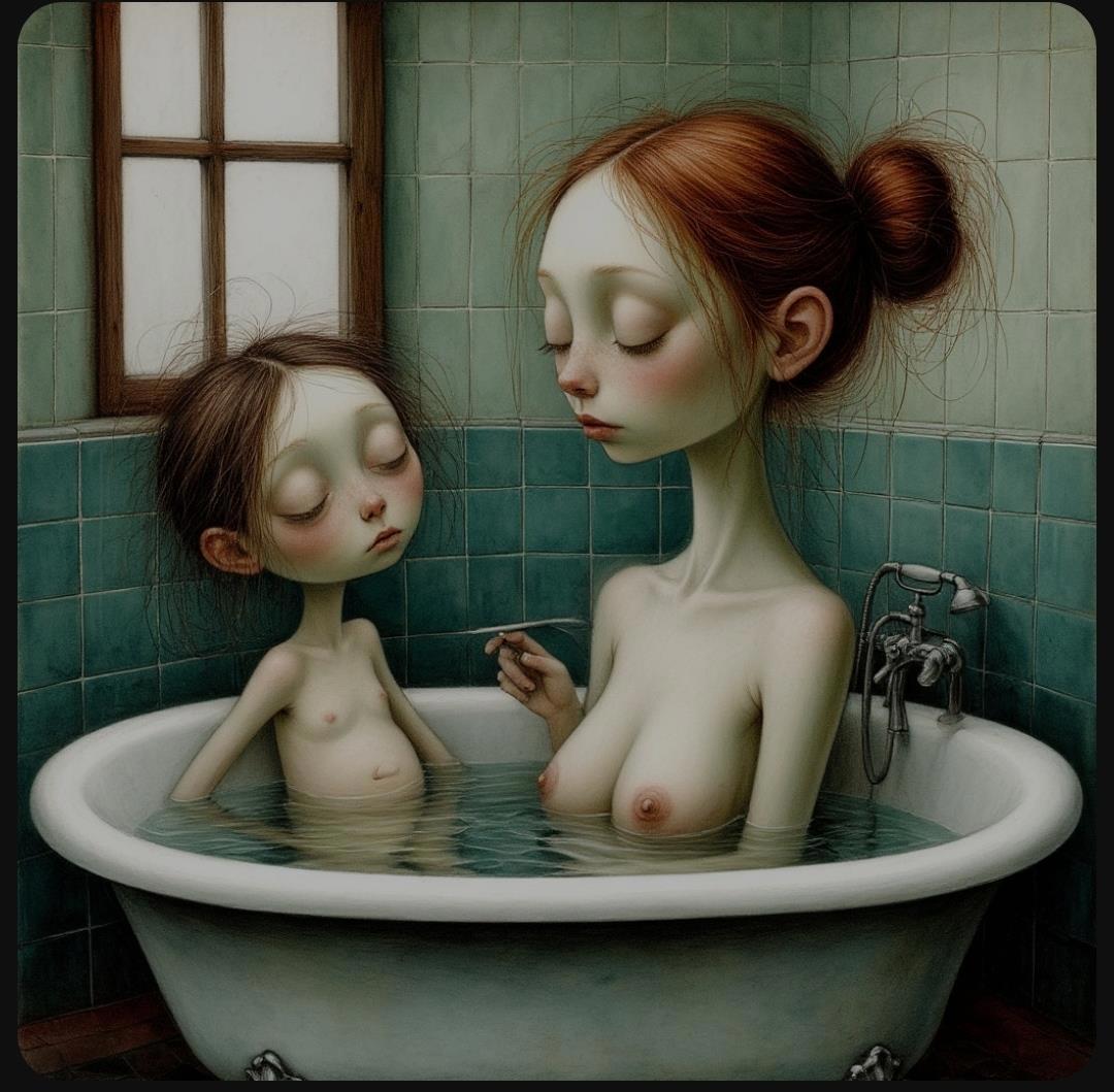 Помывка сонных социально неблагополучных девиц