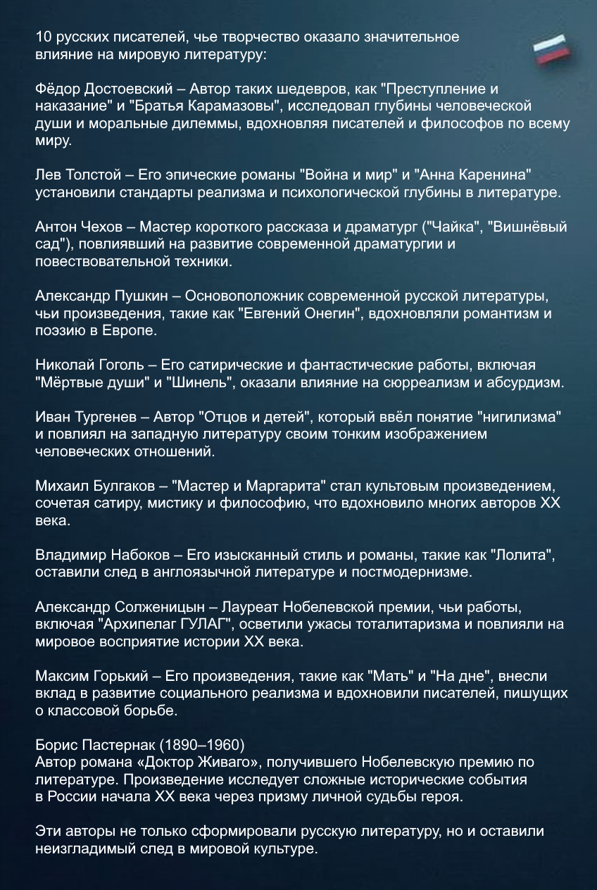 10 русских писателей, чье творчество оказало значительное влияние на мировую литературу