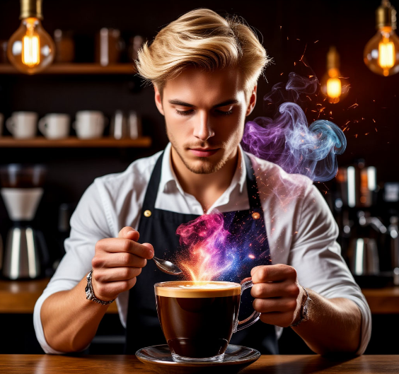 Смешав ложкой всё, что было в чашке, Кочергин сам не заметил, как залпом опрокинул фиакр. Внутри разлилось мягкое кофейно-сливочное тепло с чуть пряным сладким привкусом и обжигающим ромовым ароматом. Перед глазами промелькнул сноп медово-янтарных искр, мир слегка завалился, но Кочергин сумел-таки уцепиться за стойку. Проморгался и, сам не зная отчего, растянулся в широченной улыбке.