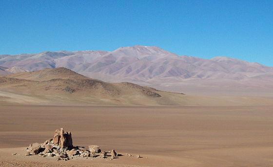 О вулкане: имеется в виду кальдера супервулкана Серро-Галан, находится в Аргентине в Центральных Андах, извергался несколько раз в древности. В тексте мы берем его извержение, случившееся примерно 2,2 млн лет назад. Это было очень мощное извержение, выпустившее свыше 1000 км³ материала.