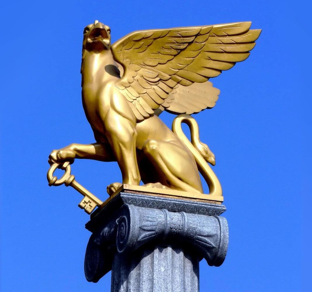 Каждый город с древнейших времен имел свою символику и покровителей. Для Керчи таким покровителем стал грифон — мифическое существо с телом льва и головой, крыльями орла. Лев — царь земли, орел — царь неба, а их слияние в одном существе символизирует господство над этими сферами бытия. В разных традициях грифон исполнял роль стража. Это объясняет, почему он стал символом Керчи. Портовый город между двух морей, по Керченскому проливу проходит граница между Европой и Азией… Керчь – ворота Крыма. Многие народы были заинтересованы в этой территории, но ее надежно охраняли грифоны.