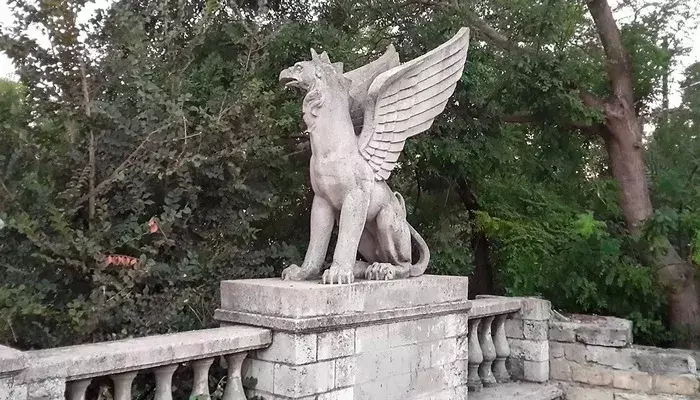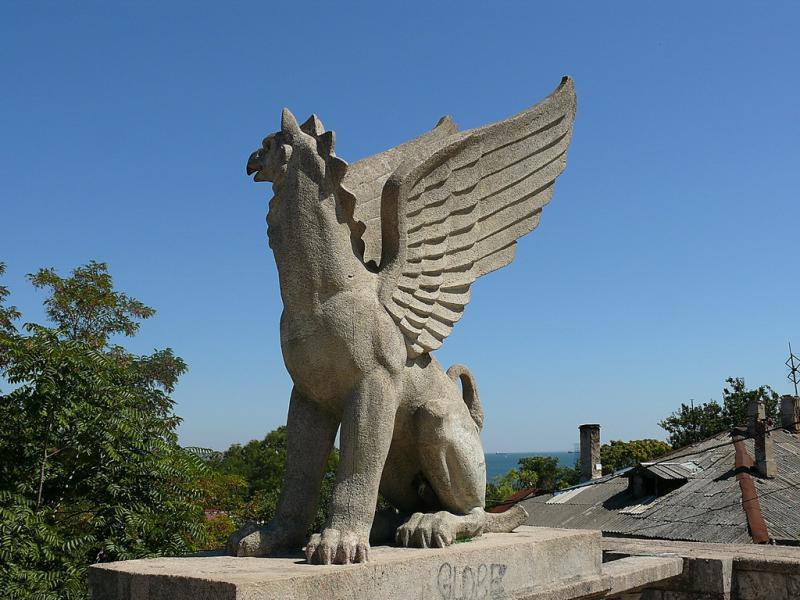 Это были величественные, царские зверюги, глядя на которые сразу было понятно, что палец им в клюв не клади, ибо оттяпают вместе с головой. Сделаны они были из серого ракушника – камня, из которого выстроена вся старая Керчь, включая обелиск славы на горе Митридат. Причем грифоны были мужского пола, потому что советские мастера не забыли про половые признаки и у статуй было всё как надо! а местная босота конечно же выкрашивала мужские причиндалы Грифонов в красный цвет.