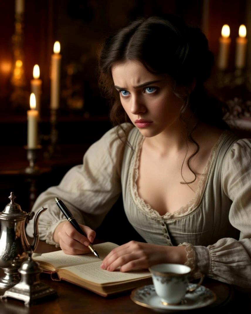Вот такая картинка получилась... Натали пишет в своем дневнике одно единственное слово, вот уже три страницы подряд.