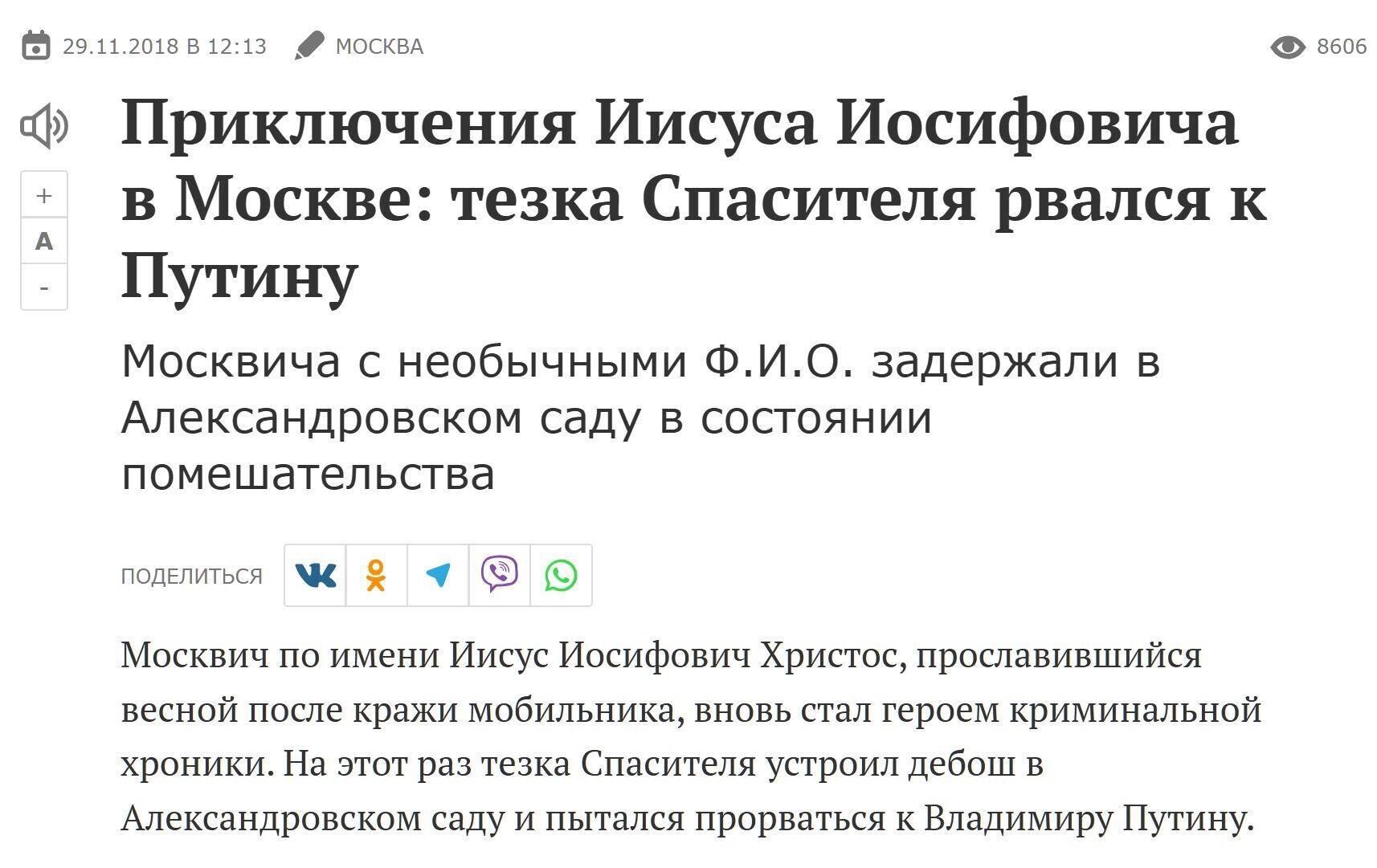 – Вы лучше новости почитайте, – прерывает полёт фантазии технарь Макс. – Вашего Иисуса Иосифовича у Кремля задержали!