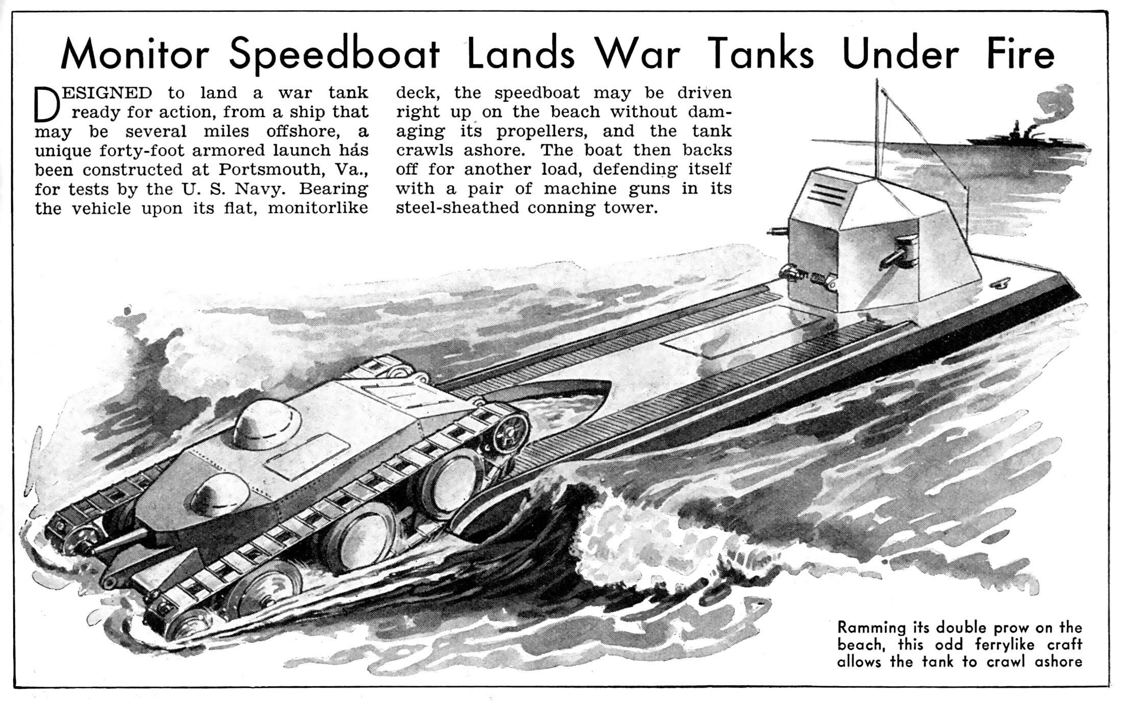 Катер для перевозки техники. Рубка бронированная с пулеметами для поддержки. Танк похож на шведский безбашенный Strv 103. Но их многие рассматривали как замену классическим однобашенным машинам, а реализовать в металле только шведу сподобились