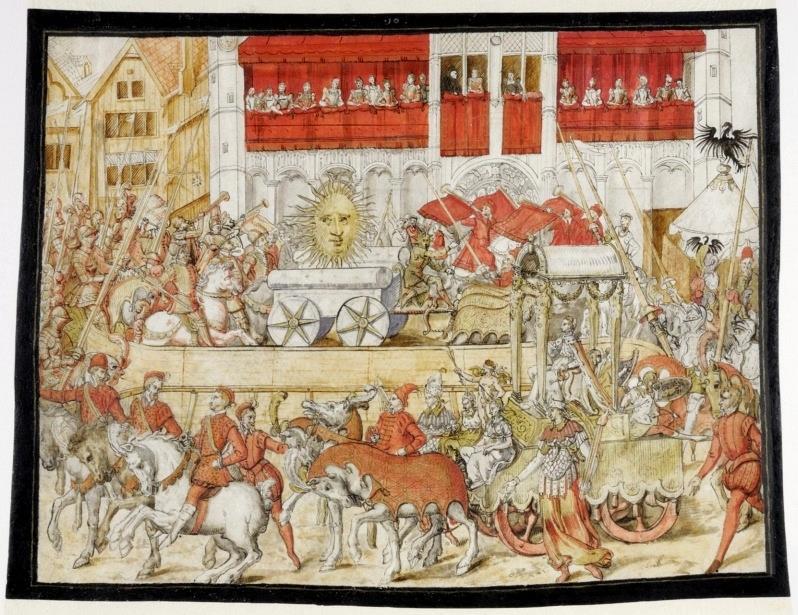 Карусель (это конная игра и представление, пришедшие на смену рыцарским турнирам) в Брюсселе в XVI веке.