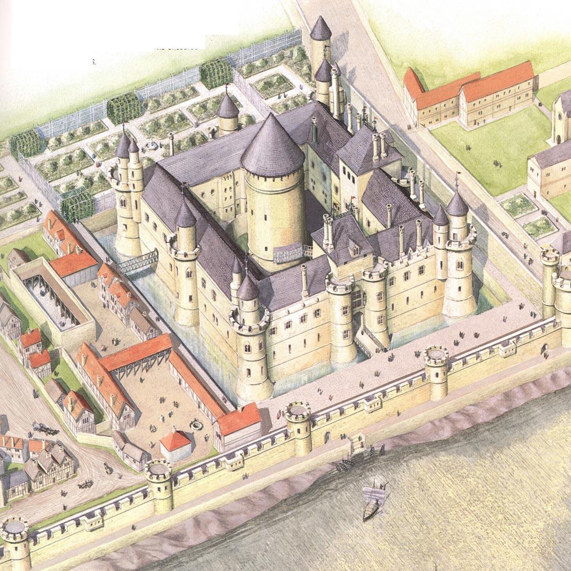 В Лувре Карл постарался установить больший порядок, чем в оставленном замке. Здесь не было купеческих лавок, сюда не пускали посторонних, а казна нашла надежное убежище в донжоне Лувра — в той самой башне, что располагалась в центре луврского двора. Попасть в эту башню придворные могли только в качестве закованных в цепи узников, и, на всякий случай, донжон окружал еще и ров.