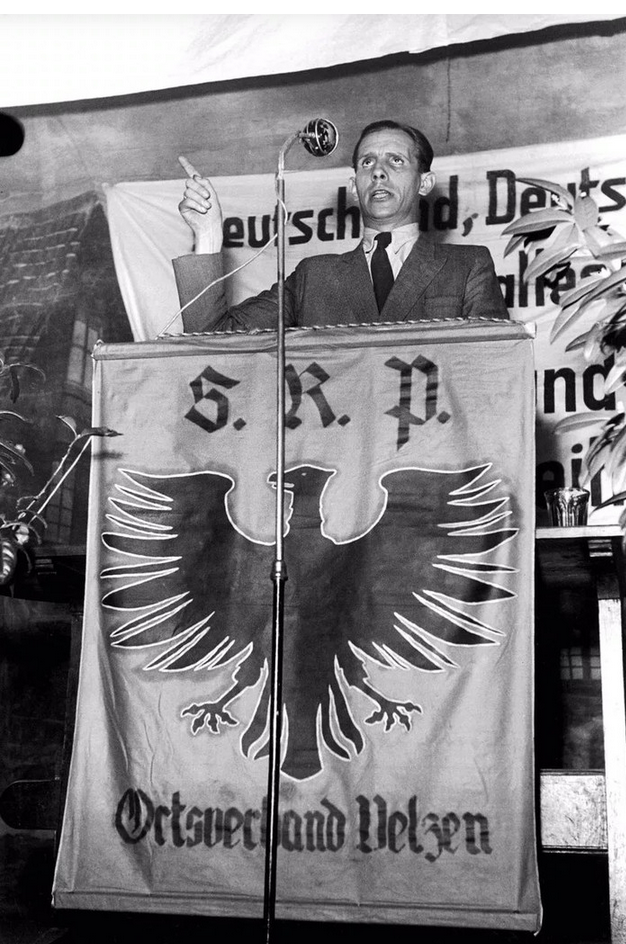 Некоторое время он работал каменщиком, а в 1949 году основал Социалистическую Имперскую партию (Sozialistische Reichspartei, SRP) и стал довольно популярным и эксцентричным политиком. Основой СИП стали бывшие рядовые нацисты и офицеры вермахта. Популярность политической силы повысил и поддерживающий партию летчик Ганс-Ульрих Рудель — «Орёл Востока», имеющий самое большое (после Геринга) количество наград в люфтваффе, любимец Гитлера. Когда Руделю попаданием 40-мм зенитного снаряда покалечило правую ногу, то он продолжал после лечения летать даже с протезом.