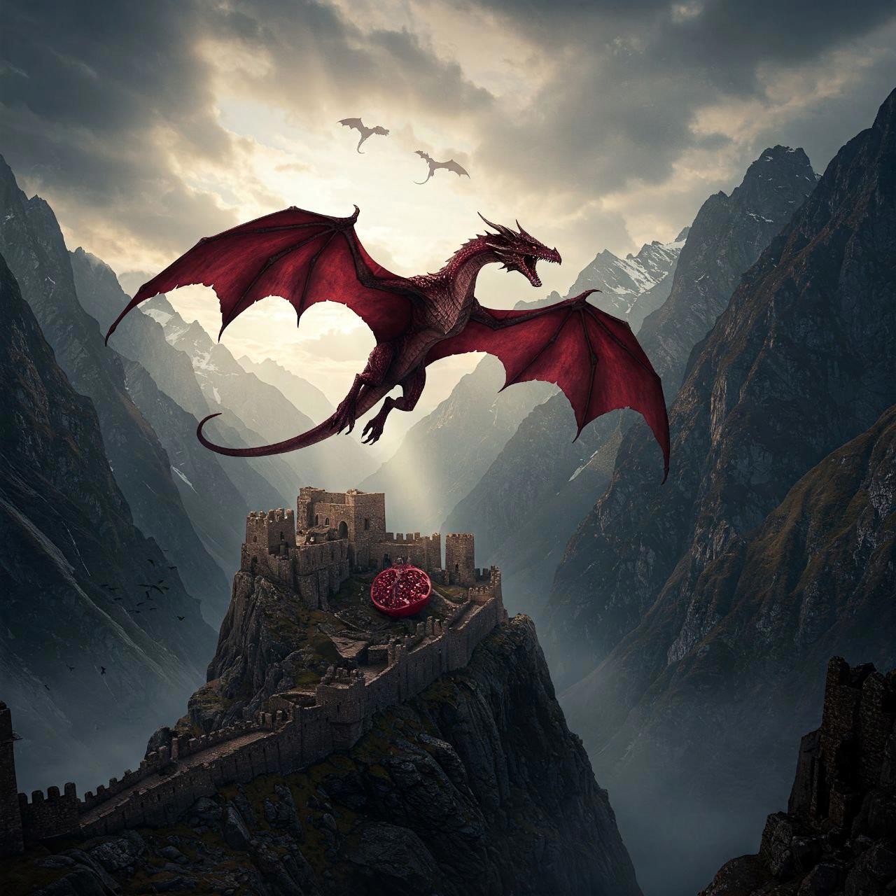 Чисто посмеяться: вот такое мне выдал ИИ на запрос "Нарисуй бордово-гранатового дракона пёстрой расцветки на фоне крепости в горах". Бордовый есть, гранат есть, крепость есть. И что мне не нравится?)