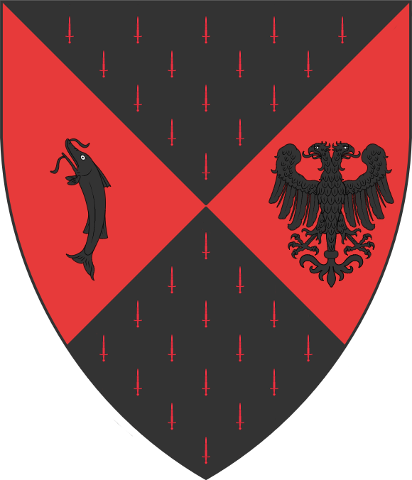 А рыба слева - это символ семьи ди Дураццо. Черная она в тон гербу Кальтенвейнеров, и Ричард V-ый ди Кальтенвейнер, король Денерии и Рейвелии, считает это уместным. Ведь он собирается взять последнюю королеву династии ди Дураццо в законные жены. Собирается защитить вдову брата от окруживших её дворцовых стервятников.