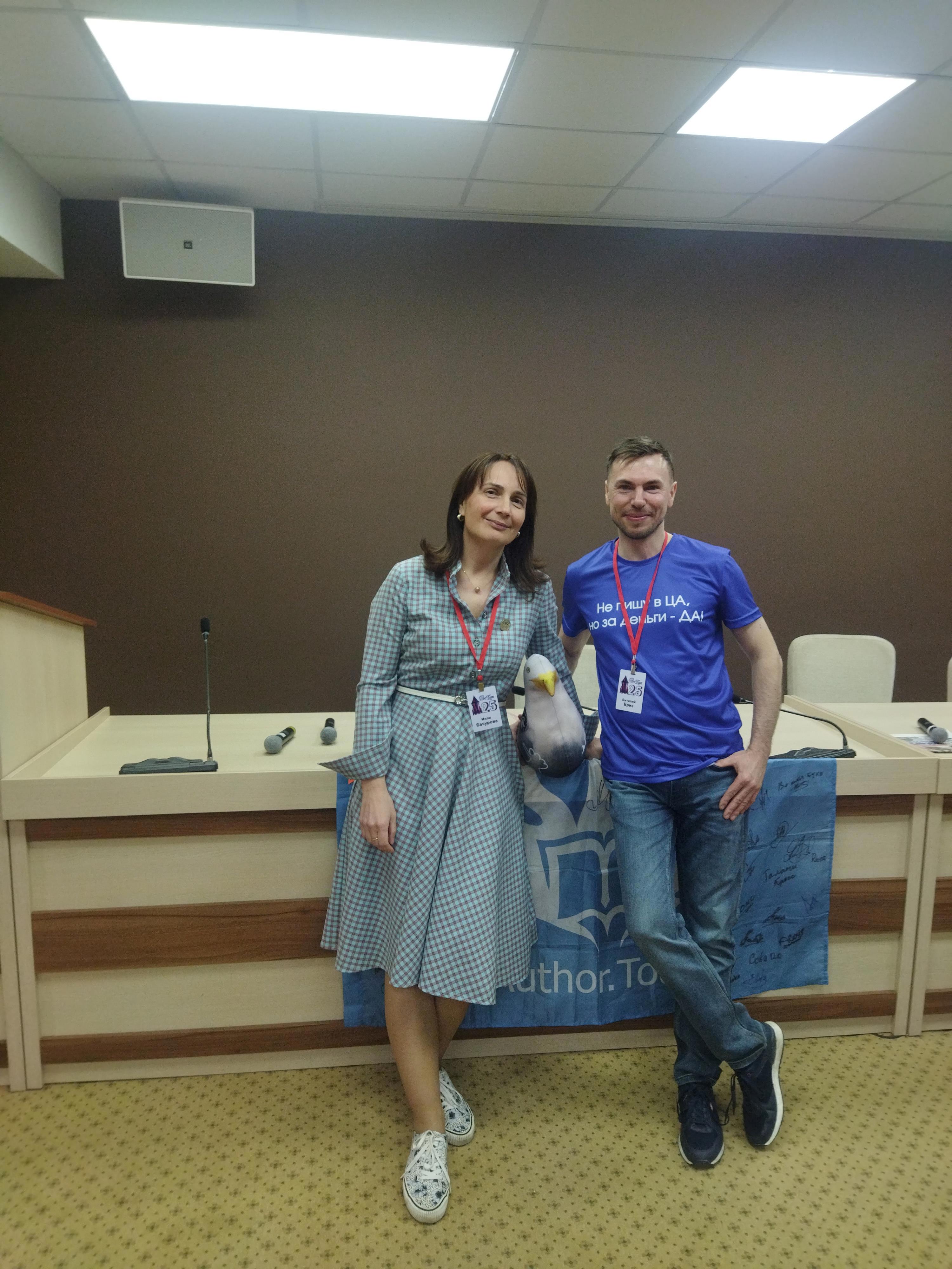После обеда пошел на мастер-класс Ковальчука, Нокса и Кораблева по рекламе в самиздате. Ребята подошли к вопросу основательно и запилили лекцию с обсуждениями на целых три часа. Первые полтора были ознакомительными — больше для тех, кто впервые сталкивается с продвижением на АТ. А вот вторая часть, по отзывам, была уже для более подготовленных авторов. Увы, мне пришлось покинуть лекцию, так как приехала мой редактор из АСТ.