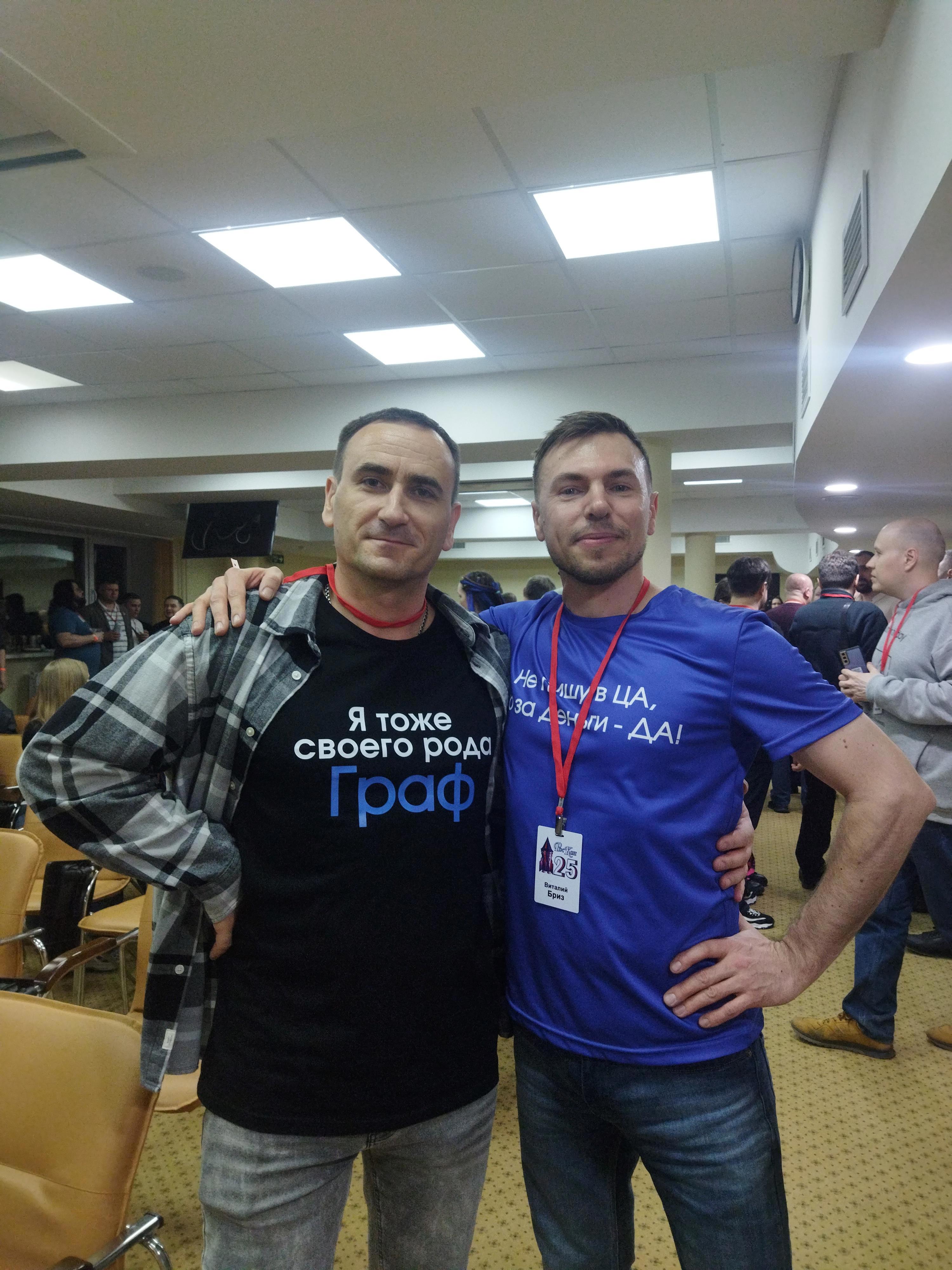 А это мы с Вектором в субботу вечером — показываем, что еще бодры и полны сил