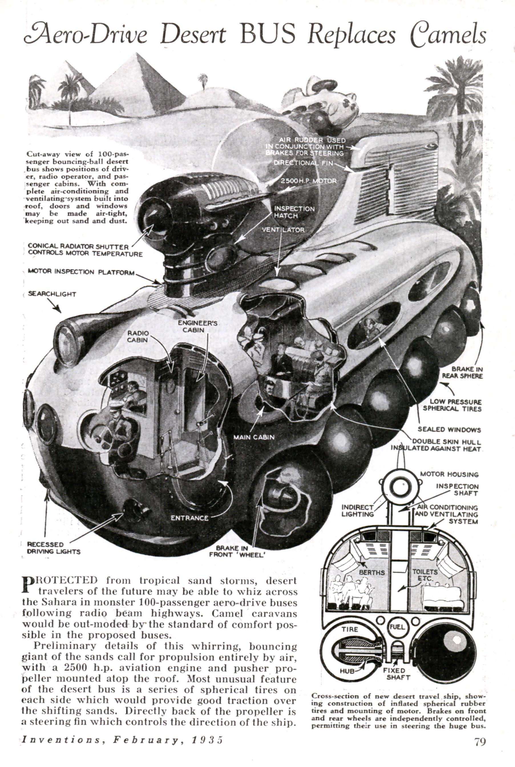 Шарокат-вездеход для пустынной местности. В движение приводится толкающим винтом. Ох и пылить он должен при поездке по песчаной пустыне!