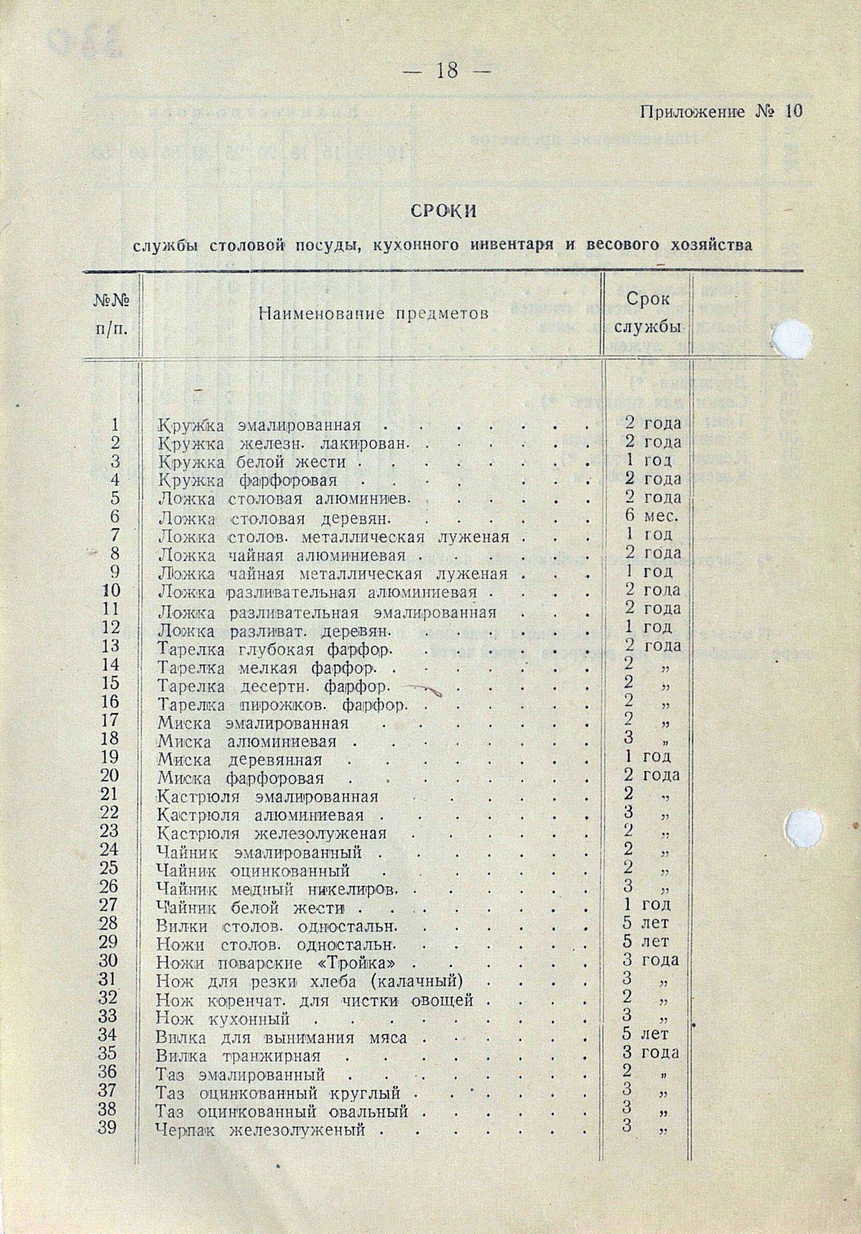 Сам приказ состоит из девяти норм, большая часть которых разработана для обеспечения медицинских учреждений. Не удивляйтесь и наличию в приказе сроков службы столовой посуды, кухонного инвентаря и весового хозяйства. Надо же как-то всё это добро списывать.