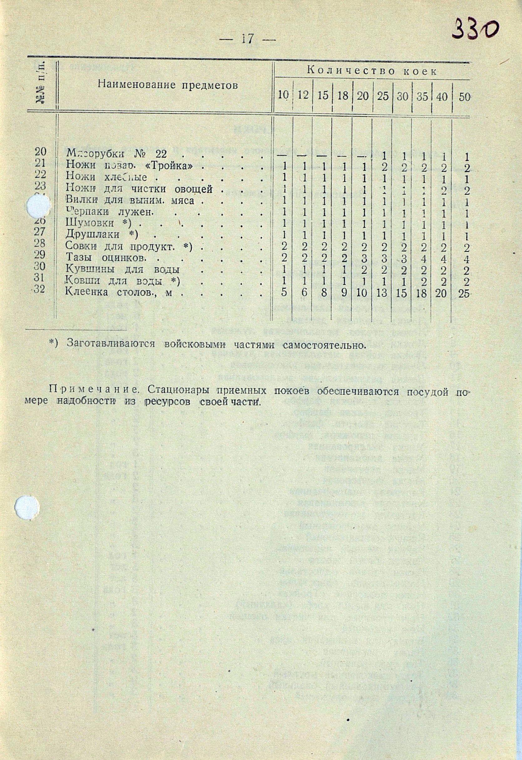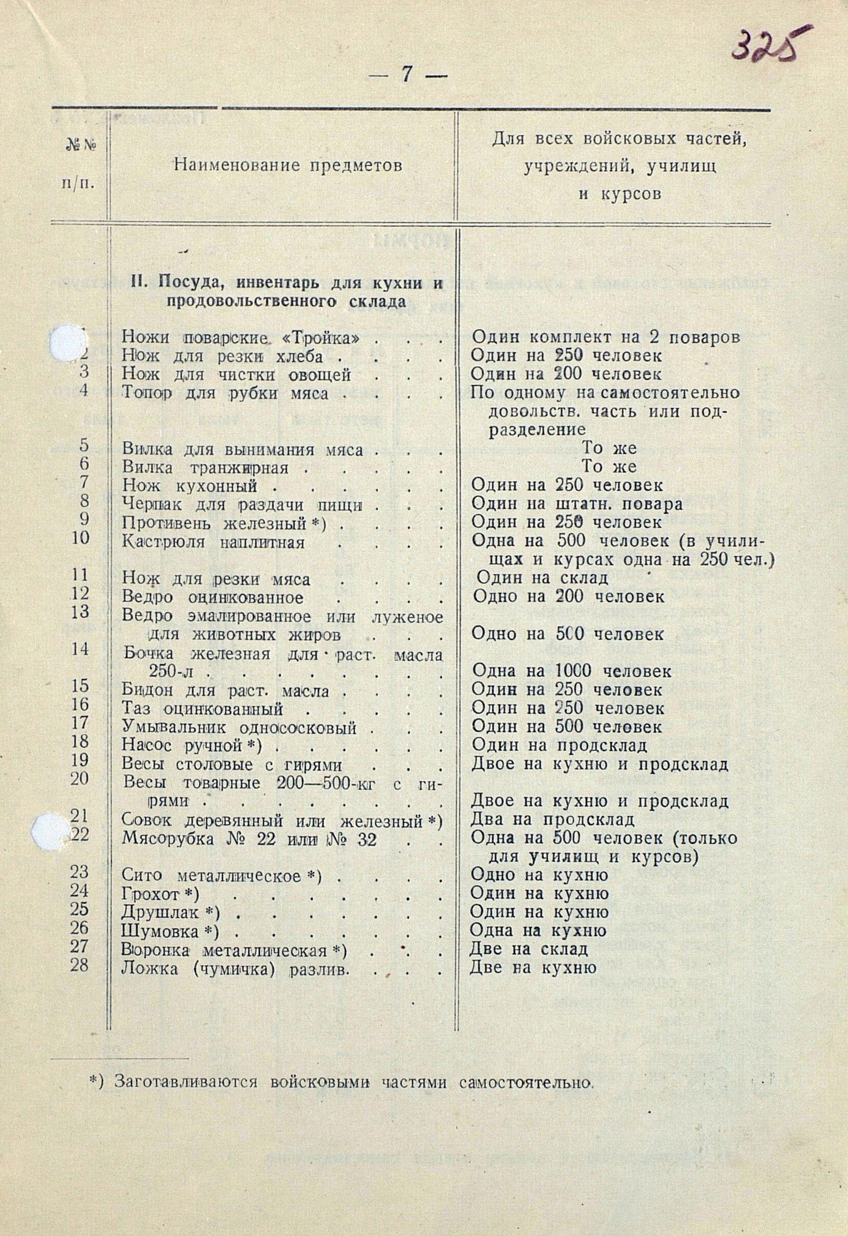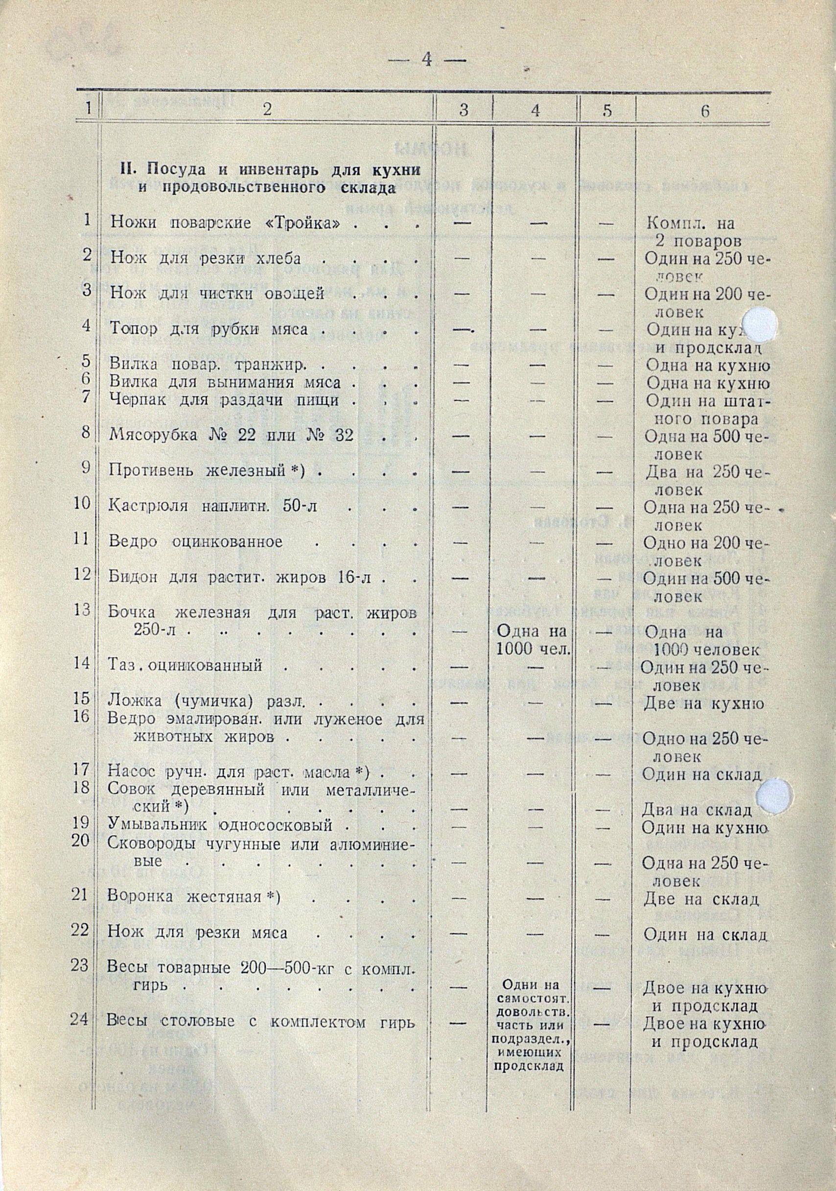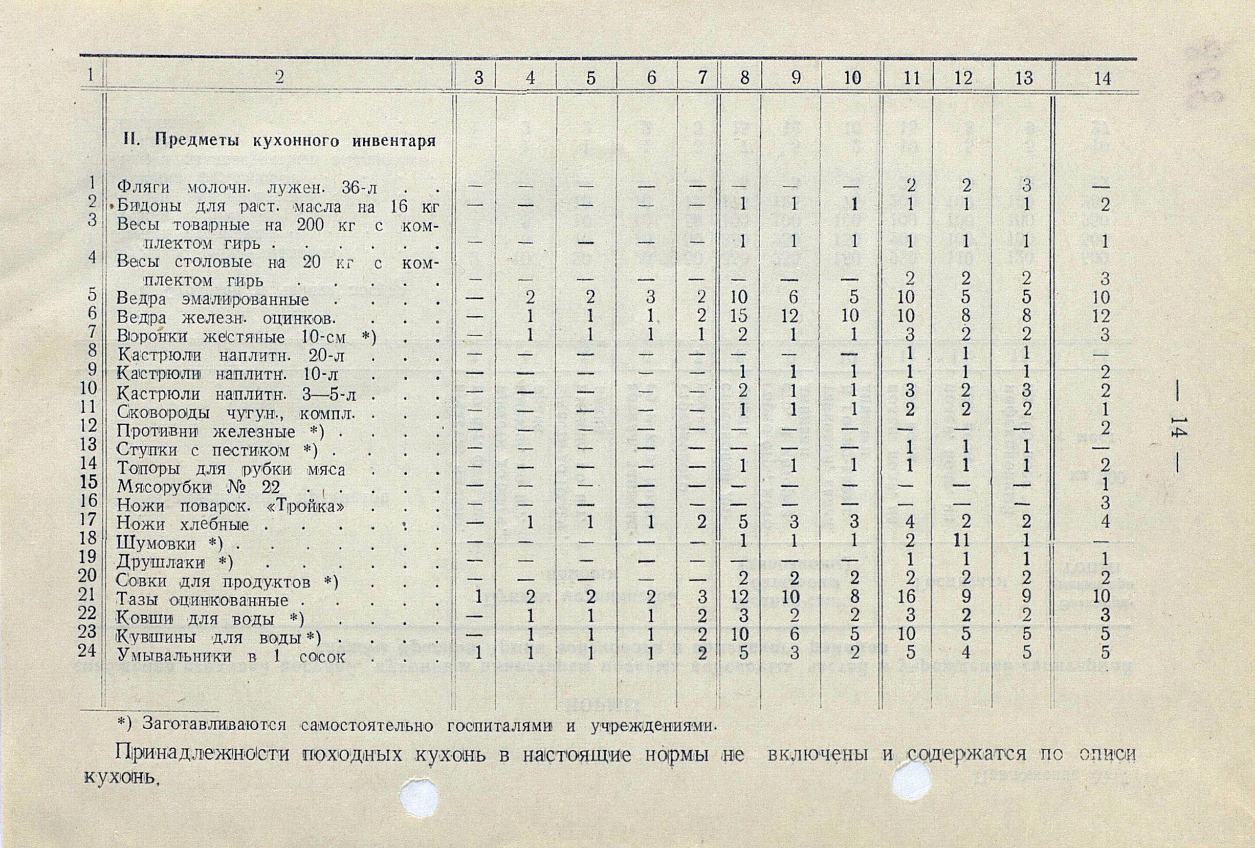 Но, если вспомнить, что в составе продовольственной службы Красной Армии были ещё курсантские, лётные, лётно-технические, госпитальные и санаторные столовые, пункты питания медицинских учреждений а также стационарные кухни воинских частей, которым необходимы разнообразные ножи, разделочные доски и прочая утварь, то понимаешь, что такие нормы были необходимы.
