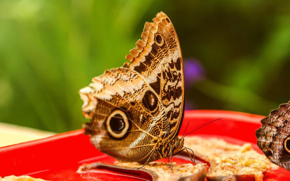 Калиго, она же бабочка-сова. Кушает банановый сок. Простите, но тут подходит именно этот глагол. Я бы даже сказала, вкушает