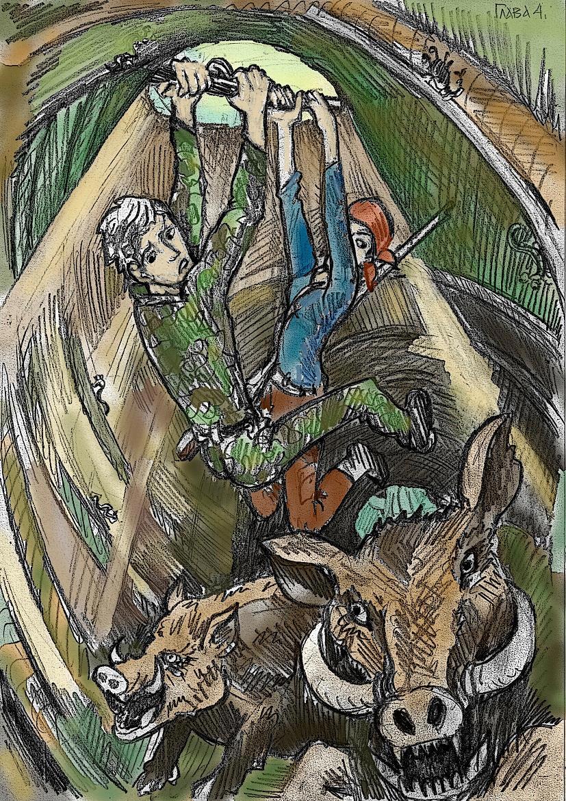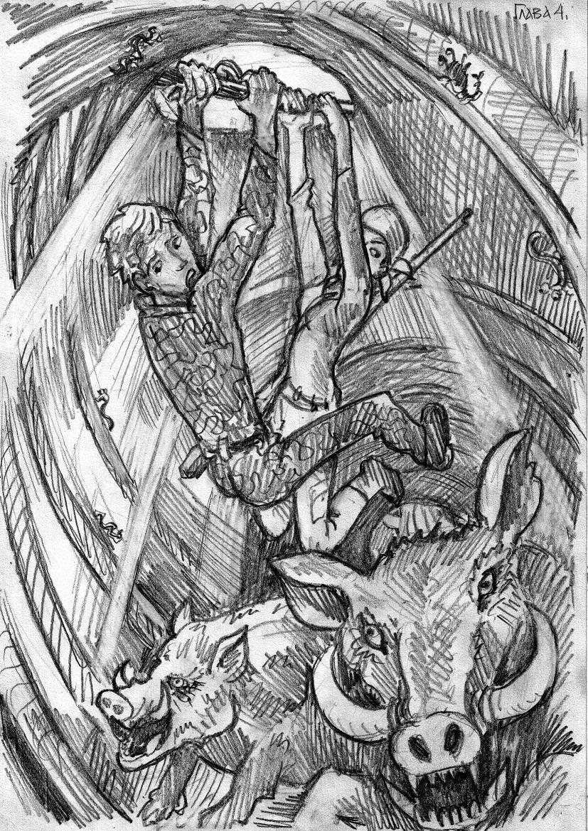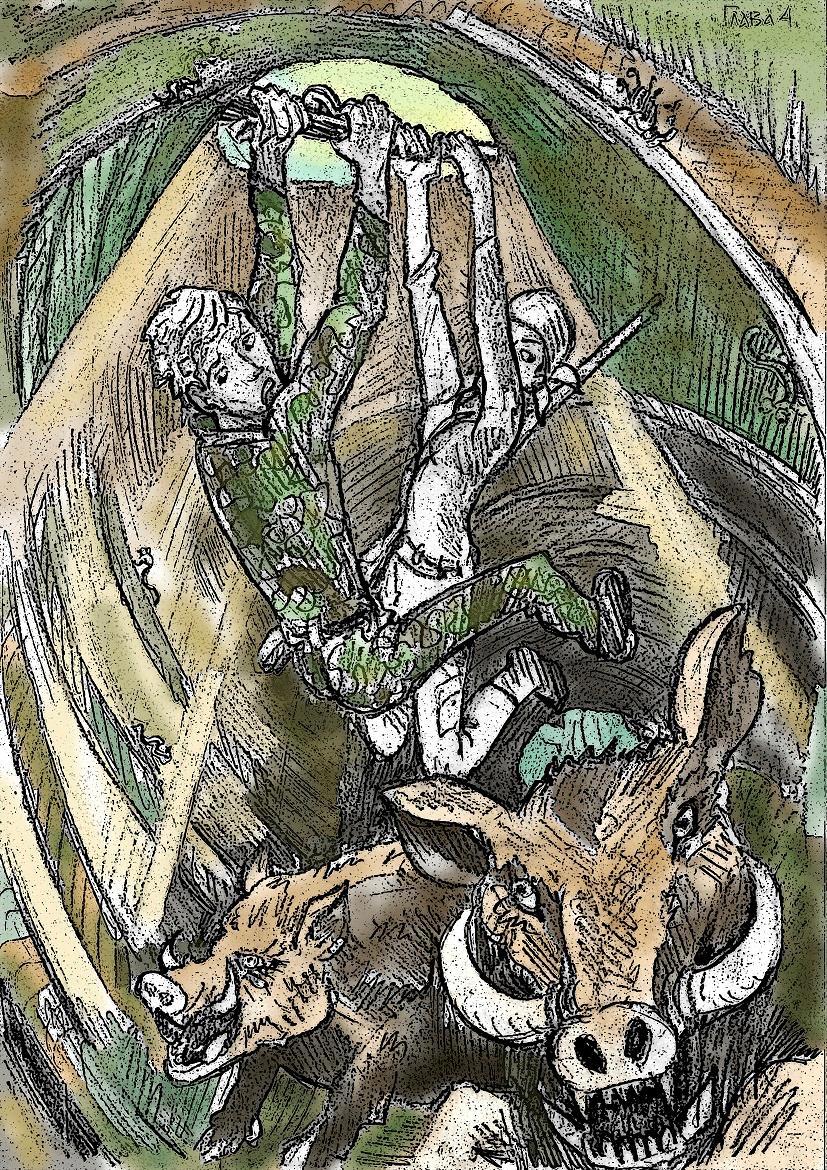Темновато. И всё в тональную кашу. Попробовала высветлить поток света и ближнюю морду хрюнди с клыками...