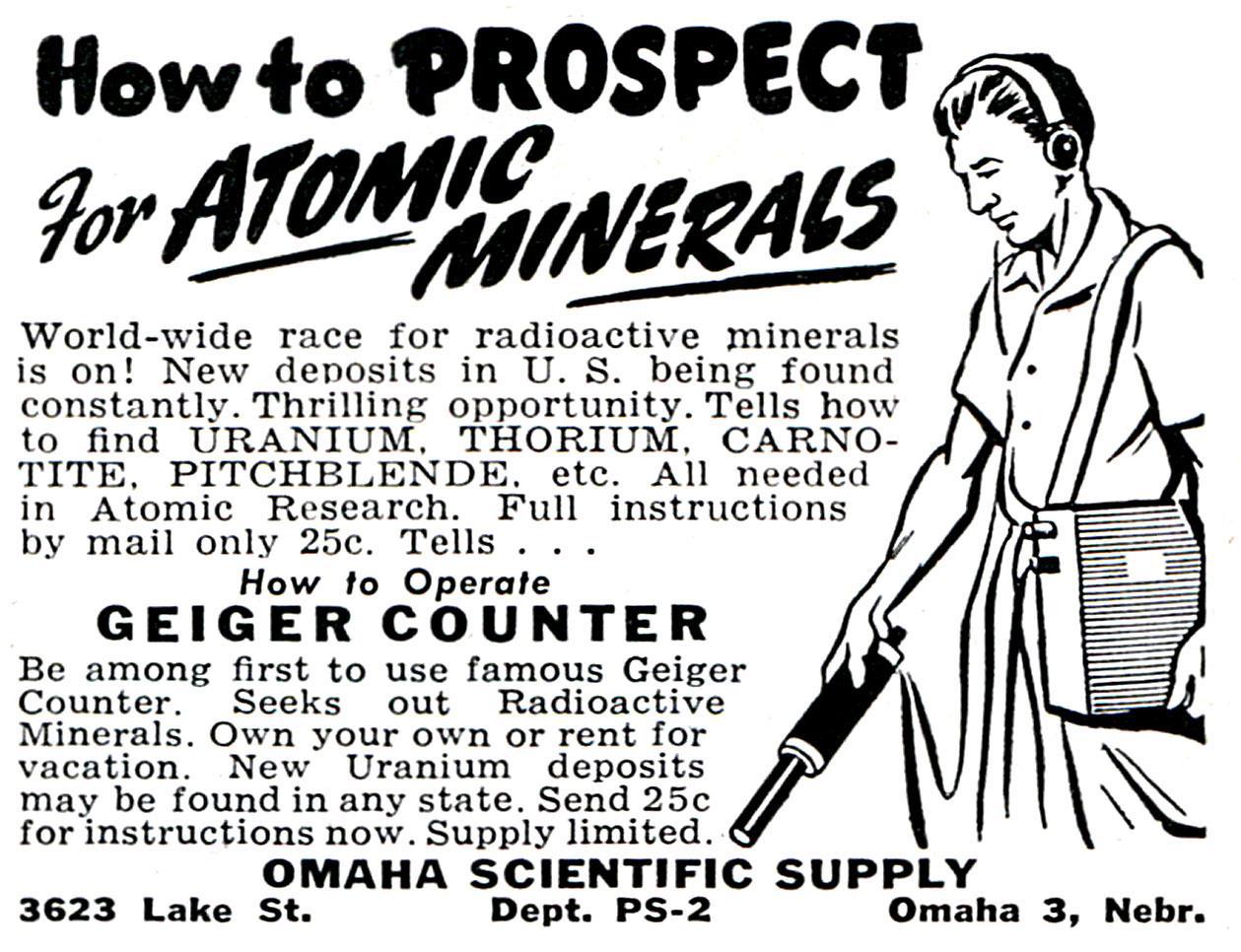 Реклама счетчика гейгера для поиска выходов радиоактивных руд. Очень многие в США искали - бум был