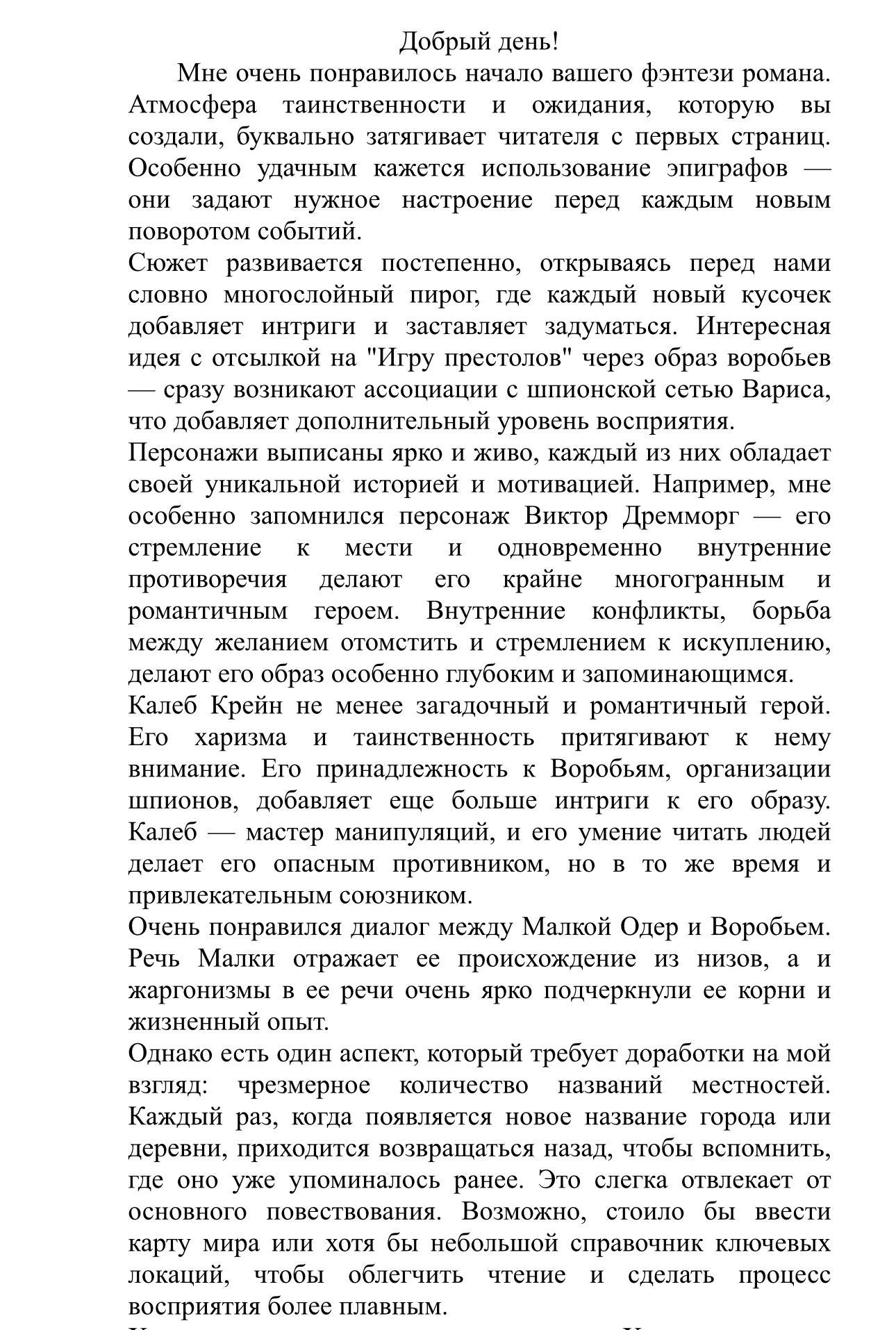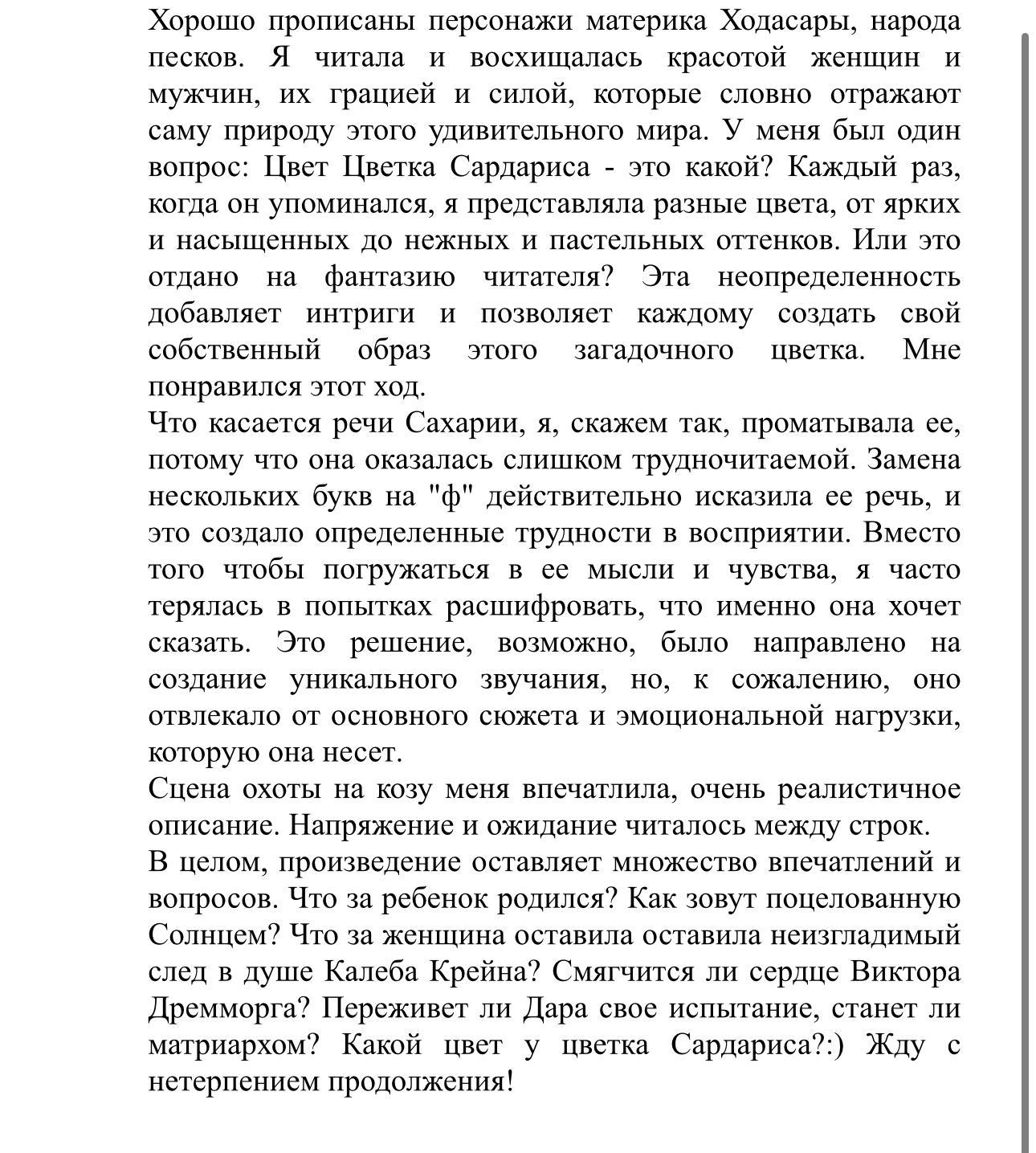 Если бы все читатели давали такие развернутые отзывы на книги, с конструктивной критикой, вопросами по делу и подчеркиванием понравившихся моментов, то в моем писательском сердце распустились бы цветы Сидариса.