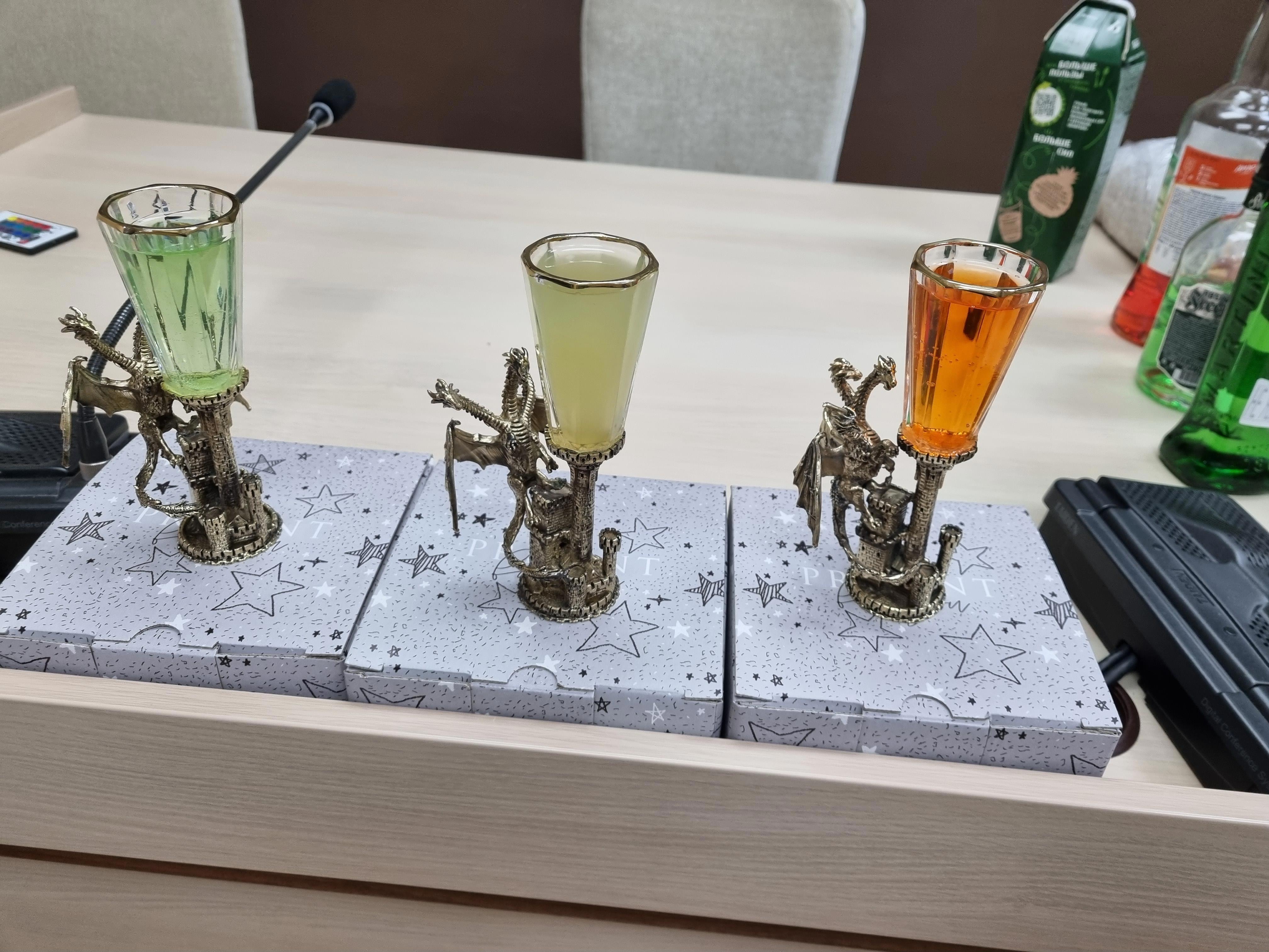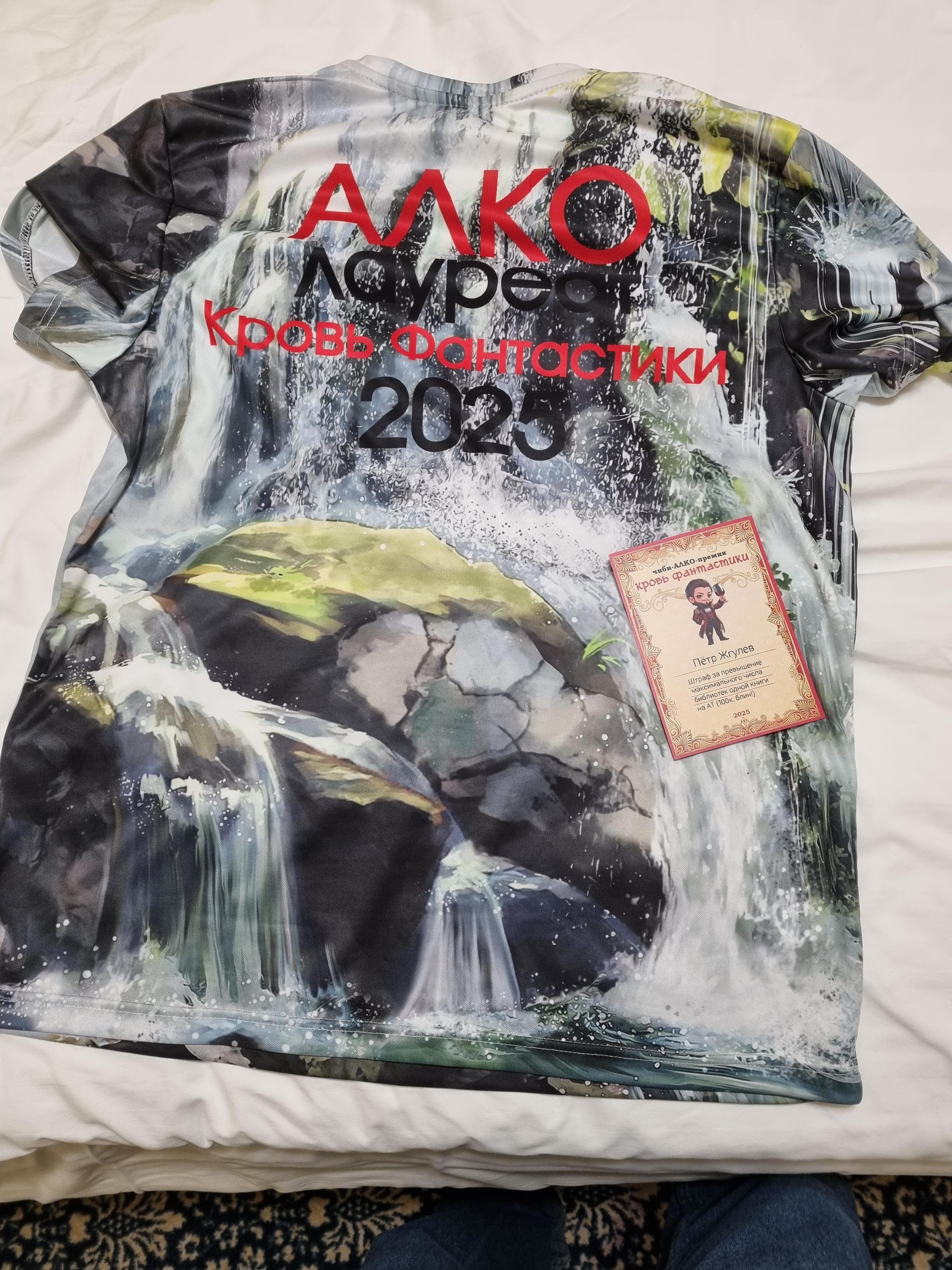 Три главных приза, в виде рюмок с трехглавыми драконами получили Евгений Бергер, Дмитрий Билик и Денис Ратманов. Всем остальным досталась малая грамота с уникальной надписью, а мне еще и, по итогам лотереи, спонсорская футболка от Михаила Игнатова. Шанс был примерно 1 к 25, но мне повезло :)