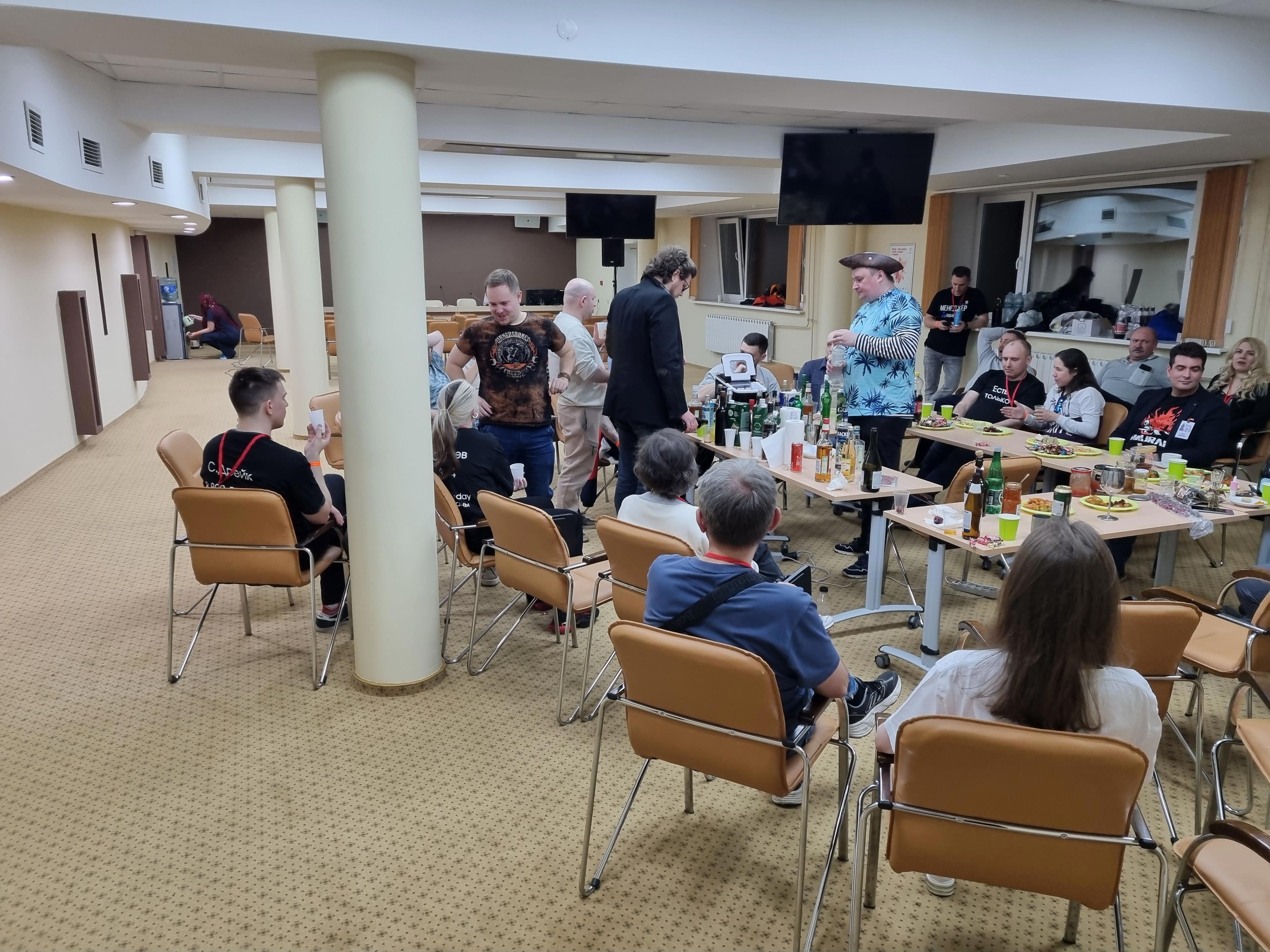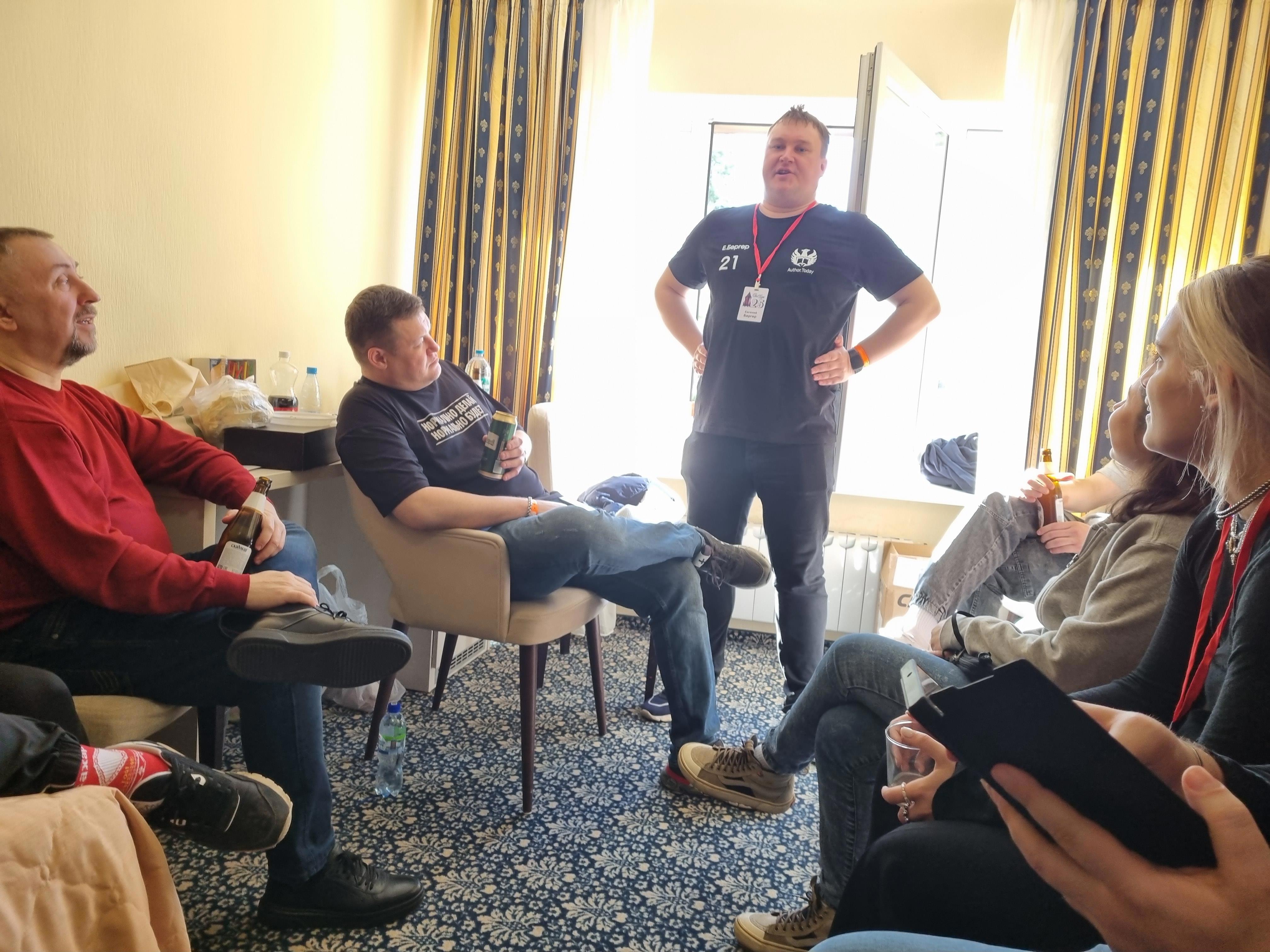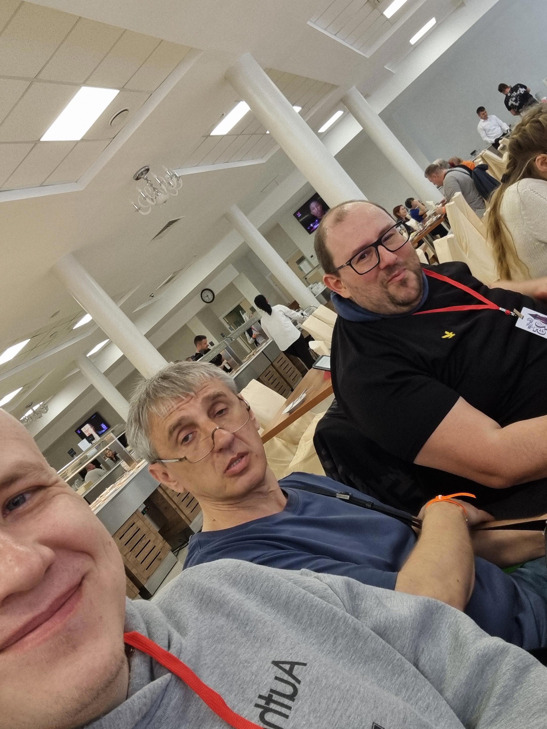 У входа нас встретил Михаил Игнатов, мы заселились и выяснили, что для обеда и ужина авторам выдают оранжевый не снимающийся браслет гостя, который нужно носить все мероприятие. Так себе идея, если честно, браслет слегка мешал. Вообще, доп дни я по ошибке взял только с завтраками и планировал доплатить на месте, но Михаил отдал мне браслет от общего номера, куда по ошибке еду как раз включили. Так что пару тысяч я сразу сэкономил ;).