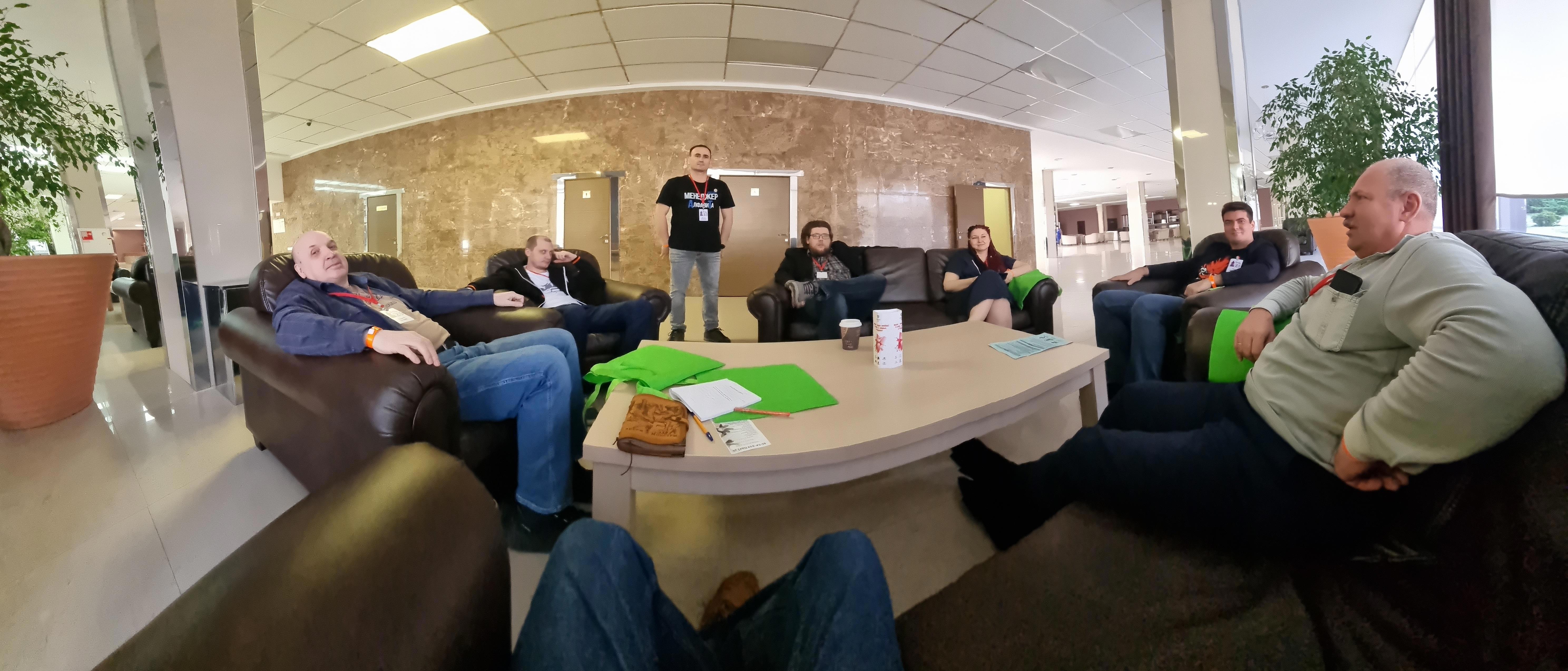 Заезд был ток к двенадцати, так что с утра я успел посидеть в холле с постепенно прибывающими авторами.