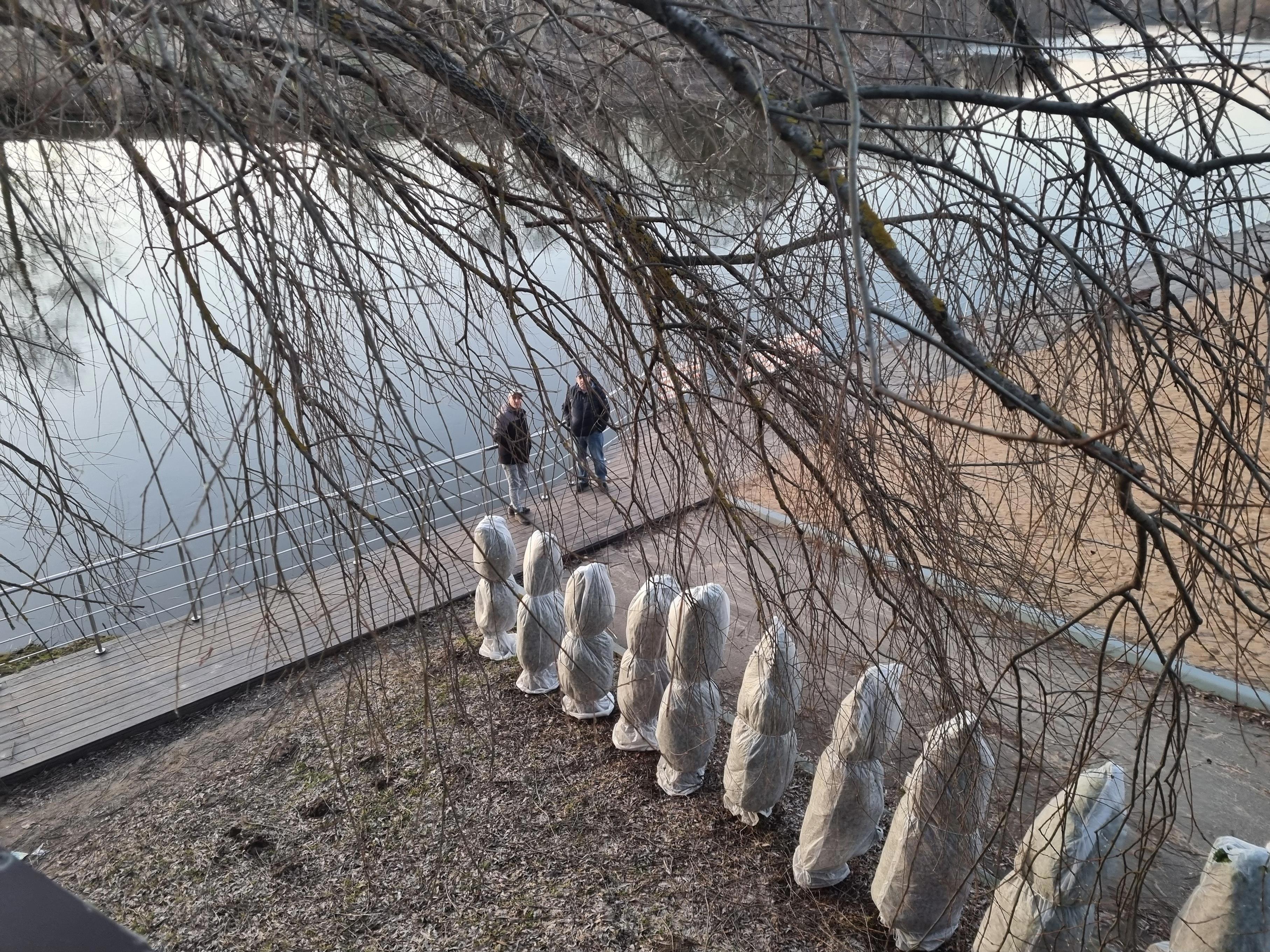 Мы втроем погуляли по парку, дойдя до берега Москвы-реки. Апрель не лучшее время, но погода стояла хорошая и прогулка получилась приятной.