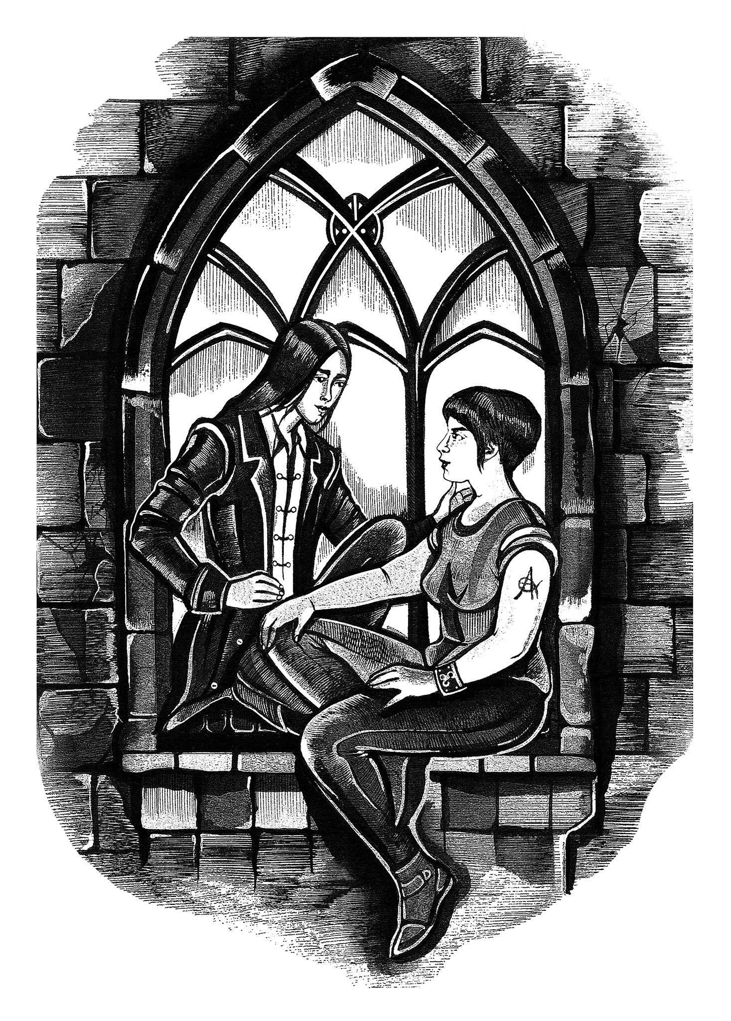 Карл и Хардред во дворе под куполом Тёмного Замка.