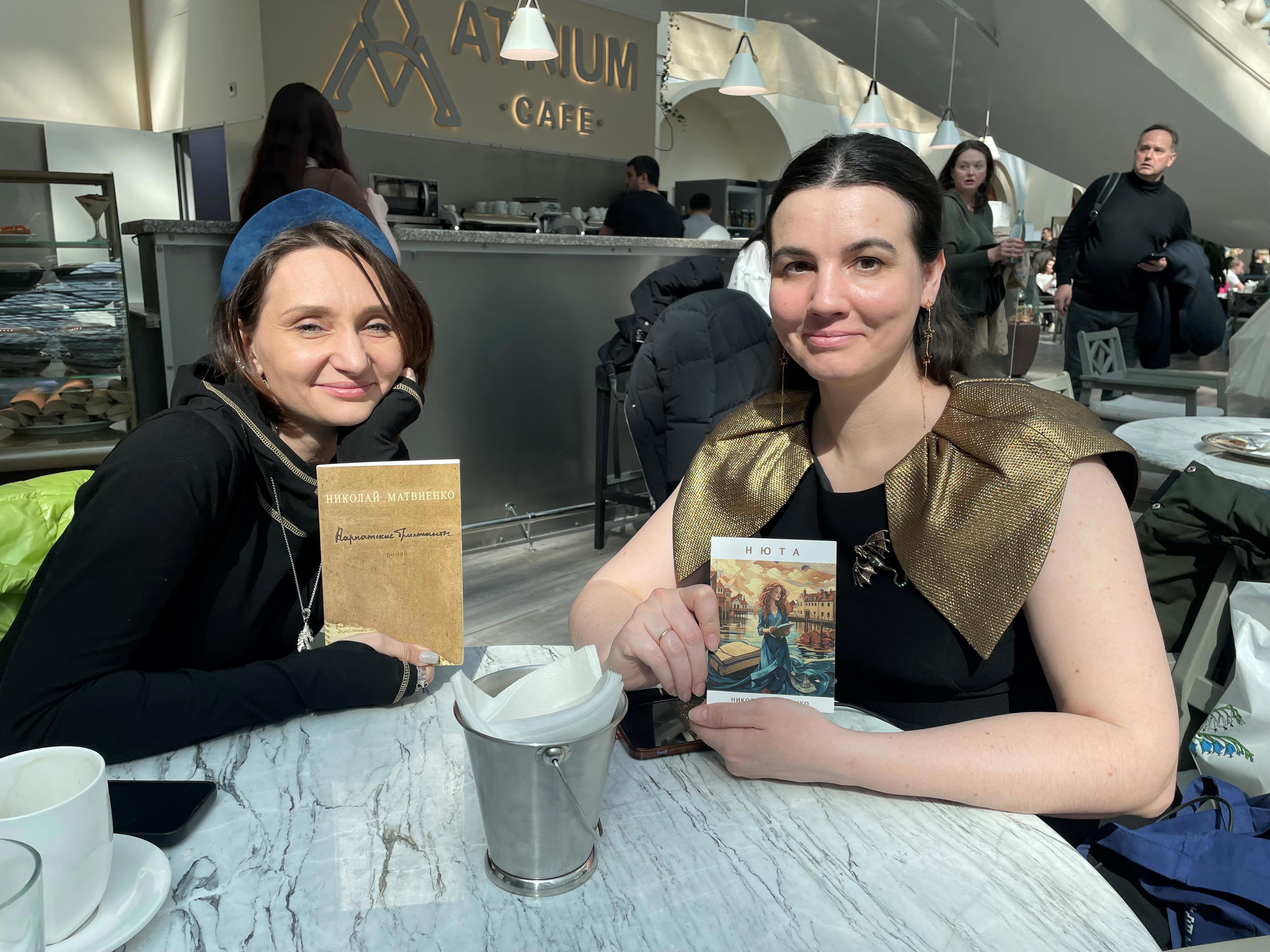 Как вы меня узнаете? Я буду со своей книгой НЮТА под мышкой. И вы берите свою изданную книгу в руках. У входа где кафе под лестницей.