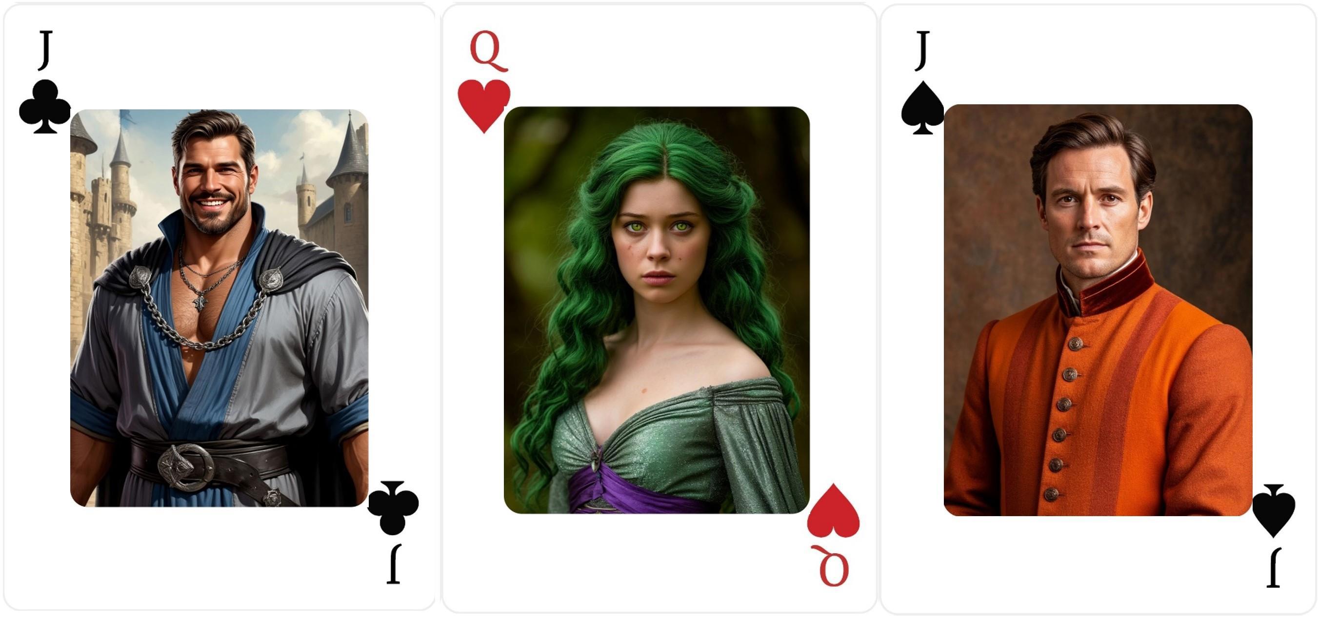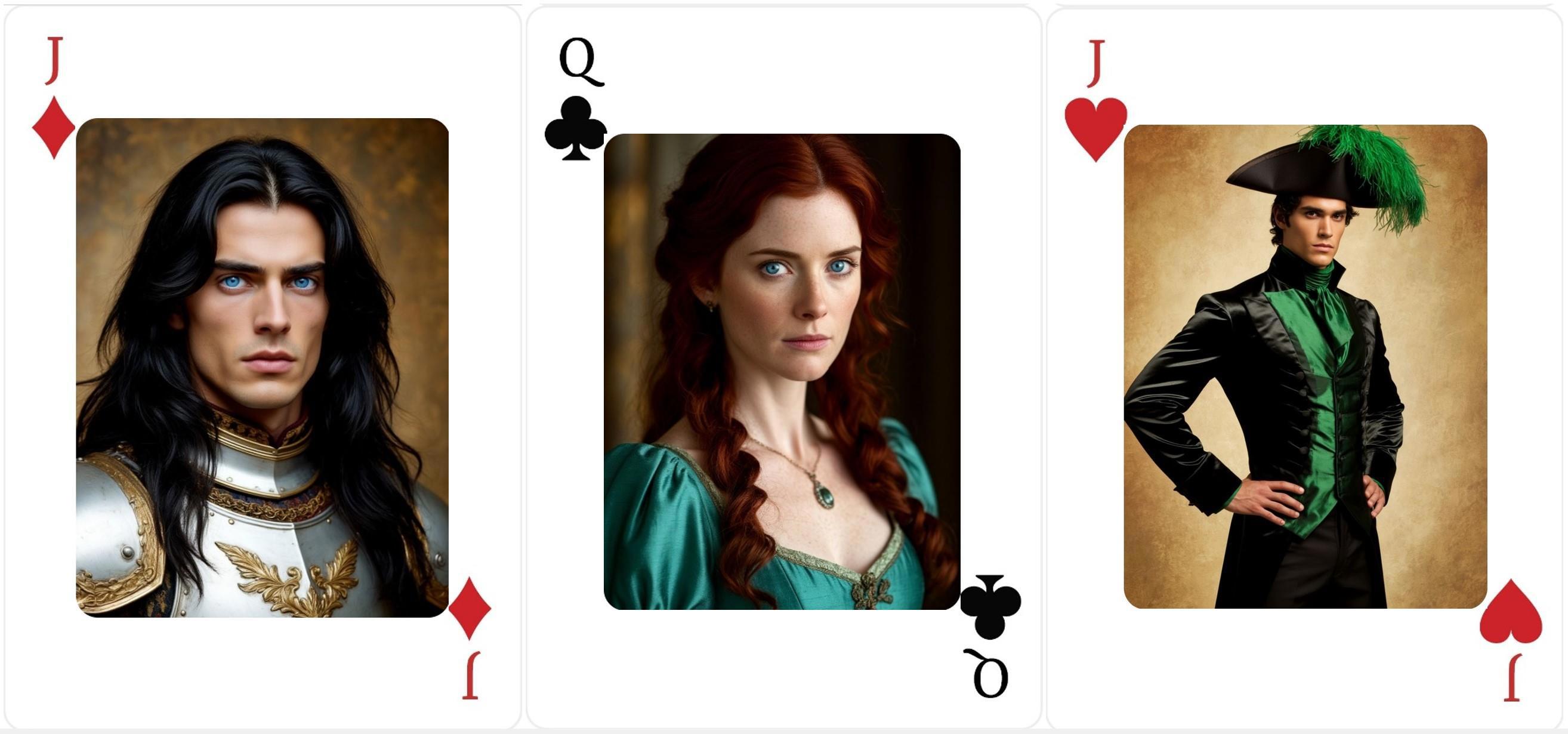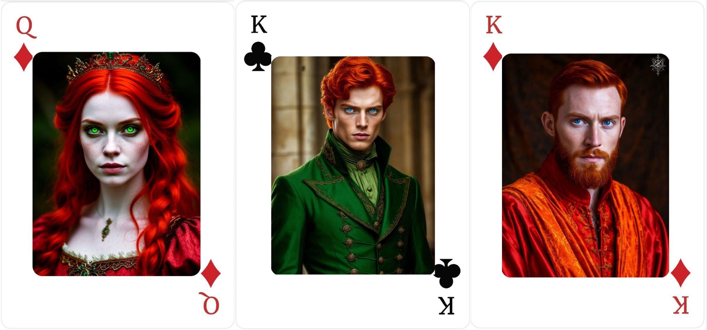 Автор: Зинаида МайороваВдохновляясь недавним творчеством Коркханна https://author.today/post/628787 и С.Степаненко https://author.today/post/629292, решила нарисовать собственную колоду из девяти принцев и четырёх принцесс Амбера. Конечно, рисовала не я, а нейросеть Шедеврум. Я только ругалась на неё/него и переписывала промпты – в конце поста есть пара примеров «до и после». Но что получилось, то получилось. Карты не подписаны, думаю, все и так догадаются, кто есть кто.