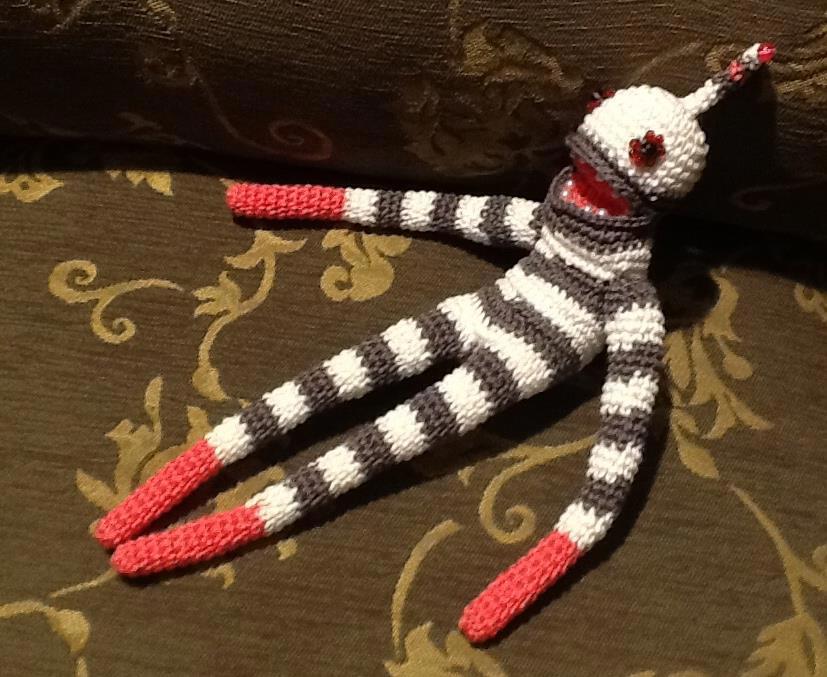 Насекомое неискомое из экологичной хлопчатобумажной пряжи и набитая не менее антиаллергическим сентипоном. Длина от макушки (без вибриссы) до конца нижних лап 28 см. Зубов в наличии 6 в верхней челюсти и почему-то 7 в нижней челюсти...