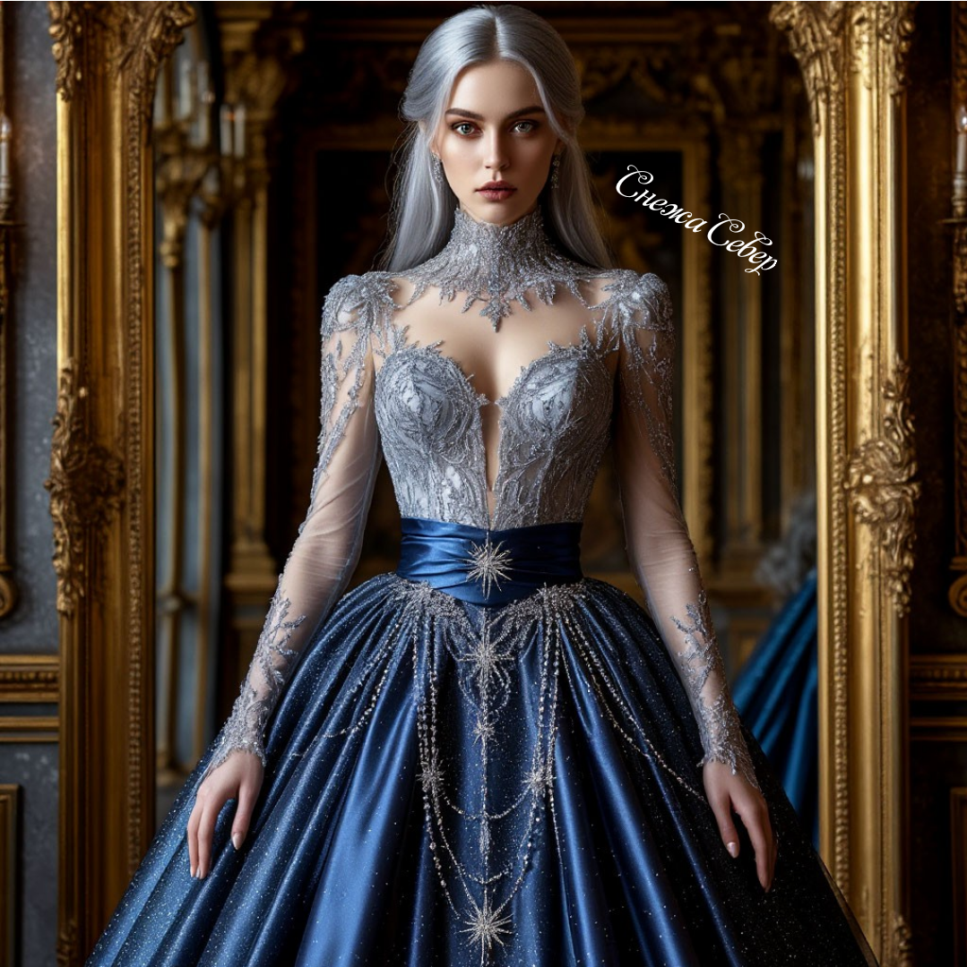 Воздушная паутинка серебристого кружева окутывала шею подобно северному сиянию. От линии груди ниспадал мерцающий шёлк цвета полночной синевы. Талию опоясывал атласный кушак цвета черничного джема, разделяющий корсаж и ниспадающий каскадом подол с шлейфом. По всей длине нижней части платья рассыпались серебристые бусины, сплетаясь в узоры, напоминающие звёздную карту. Они формировали созвездия и туманности, растворяясь в складках шлейфа. На корсаже искрилась тончайшая вышивка серебристой нитью, создающая иллюзию северного сияния. Под одеждой, втайне от посторонних глаз, Нира хранила самодельный кинжал, собранный из костяных шпилек. При каждом движении острые концы больно впивались в кожу, но она была готова терпеть эту боль. Нира медленно подняла руки, чтобы укротить непокорный локон серебристых волос.