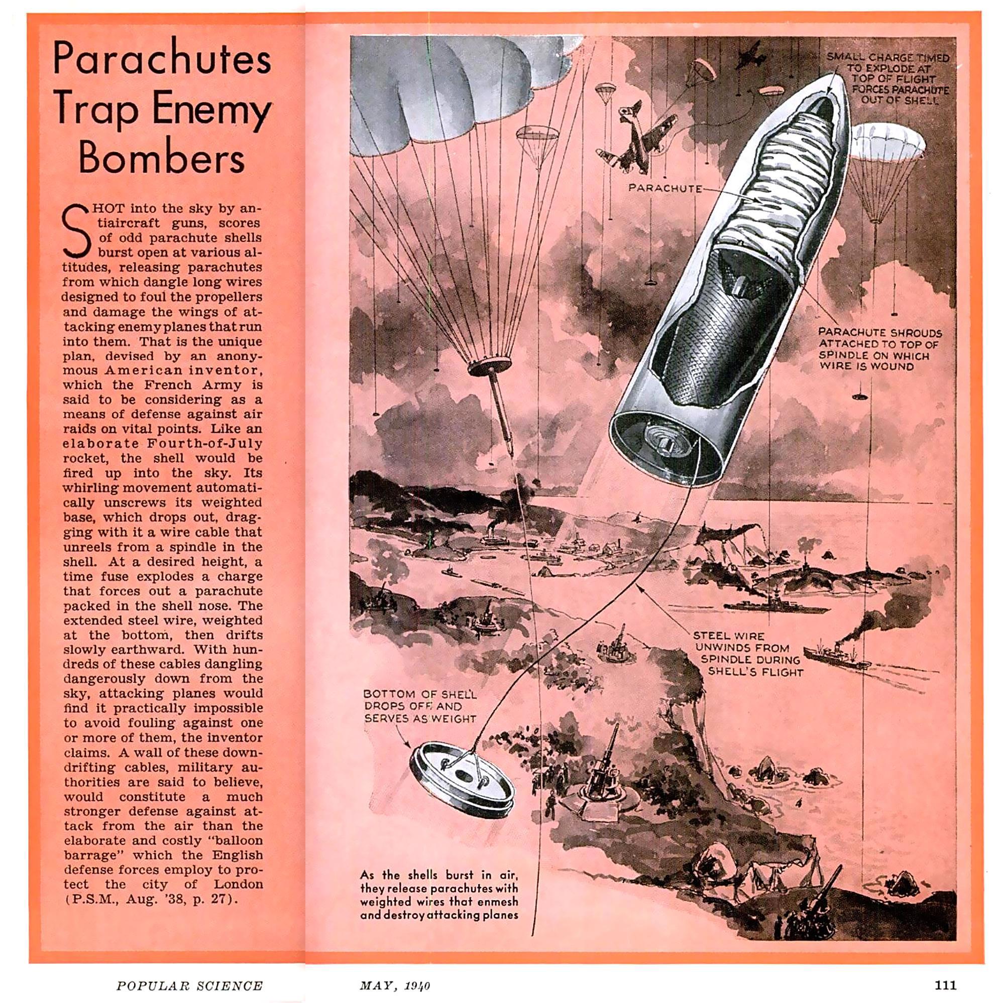 Снаряды ПВО для постановки заграждения из тросов перед летящими самолетами. Что-то вроде аэростатов заграждения, но ненадолго
