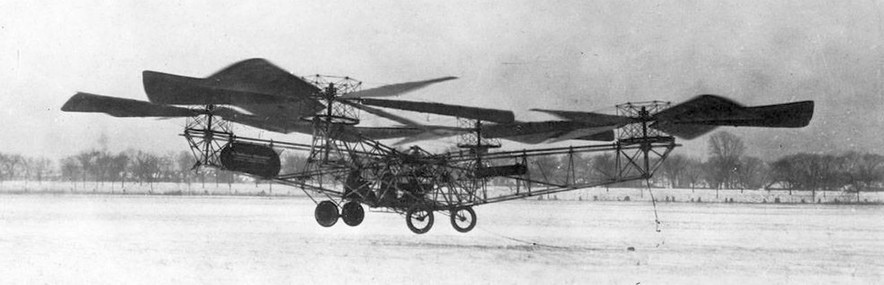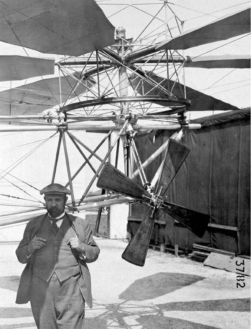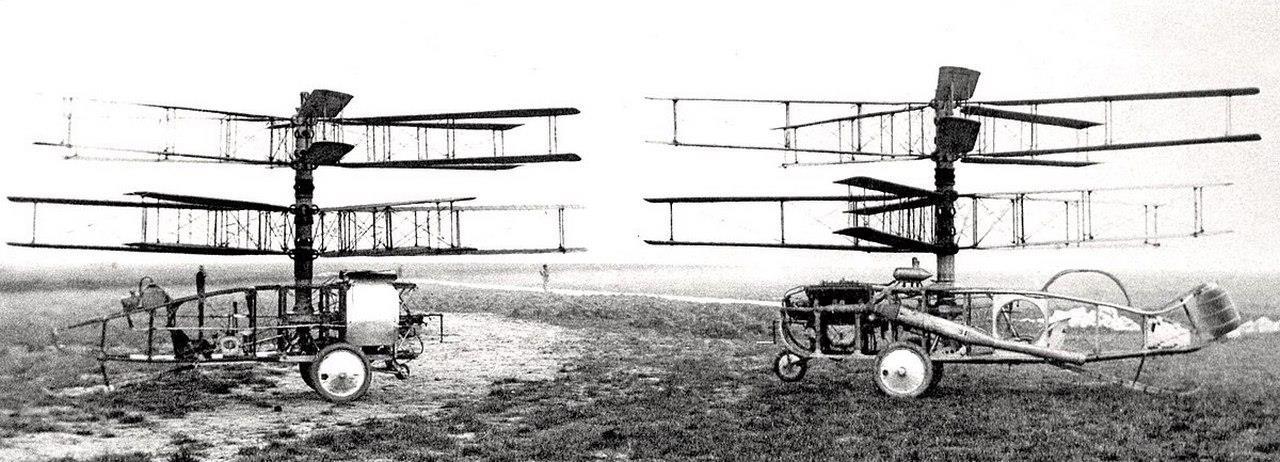 В прошлом, в самом начале эпохи авиации, вертолётами увлекались не только гении вроде Корню и Юрьева. Были и другие увлечённые личности. Однако одной увлечённости и трудолюбия всё же мало. Вот не знаю, почему братья Луи и Жак Бреге в своём далёком 1907 году выбрали для своего летательного аппарата такую вот странную схему аж с четырьмя подъёмными винтами: