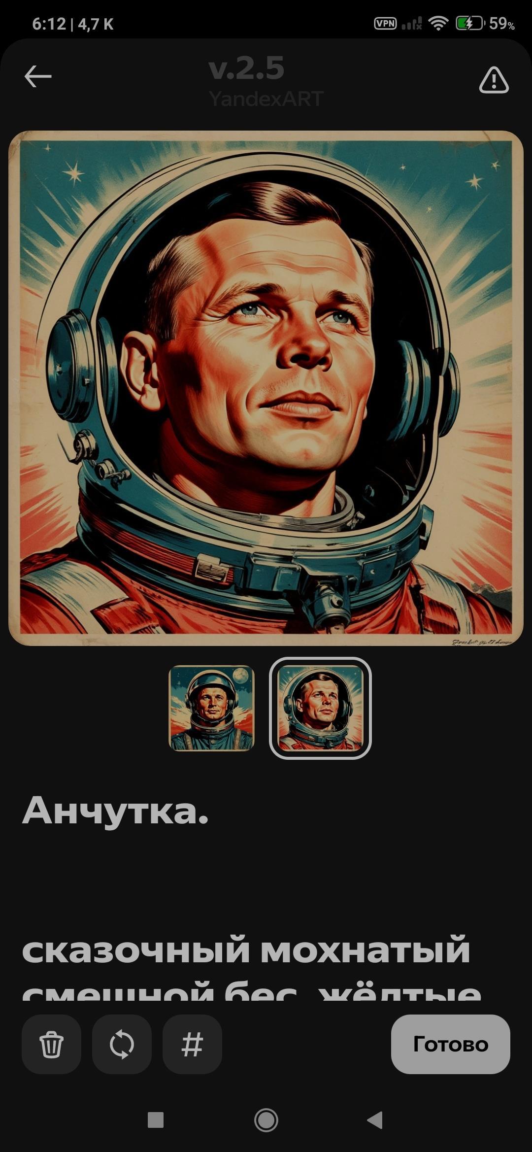 А еше сегодня шедеврум сошел с ума - если в любой промт вставить слово "космонавт", он рисует только Гагарина, ну или очень похожего космонавта, в своем стиле.