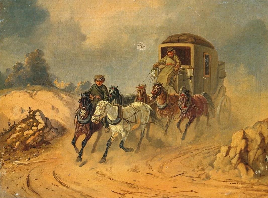 Карета появилась, вроде бы, в XV веке и на первых порах была не самым удобным средством передвижения. Кузов её прикрепляли к раме при помощи ремней: это смягчало толчки при движении по кочкастой и корявой дороге, но как же в такой шайтан-арбе мотало на ходу… Конечно, двигаться быстро и в то же время безопасно эта конструкция не могла. По-настоящему удобными и популярными пассажирские экипажи сделались после того, как некий прекрасный человек заново изобрёл рессоры (у древних римских колесниц они были, но потом всё как-то потерялось и забылось). Тогда же началось направленное выведение упряжных пород лошадей: каретных, а после и тяжеловозов.