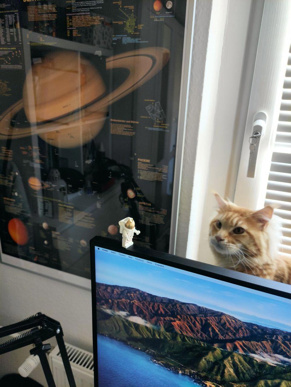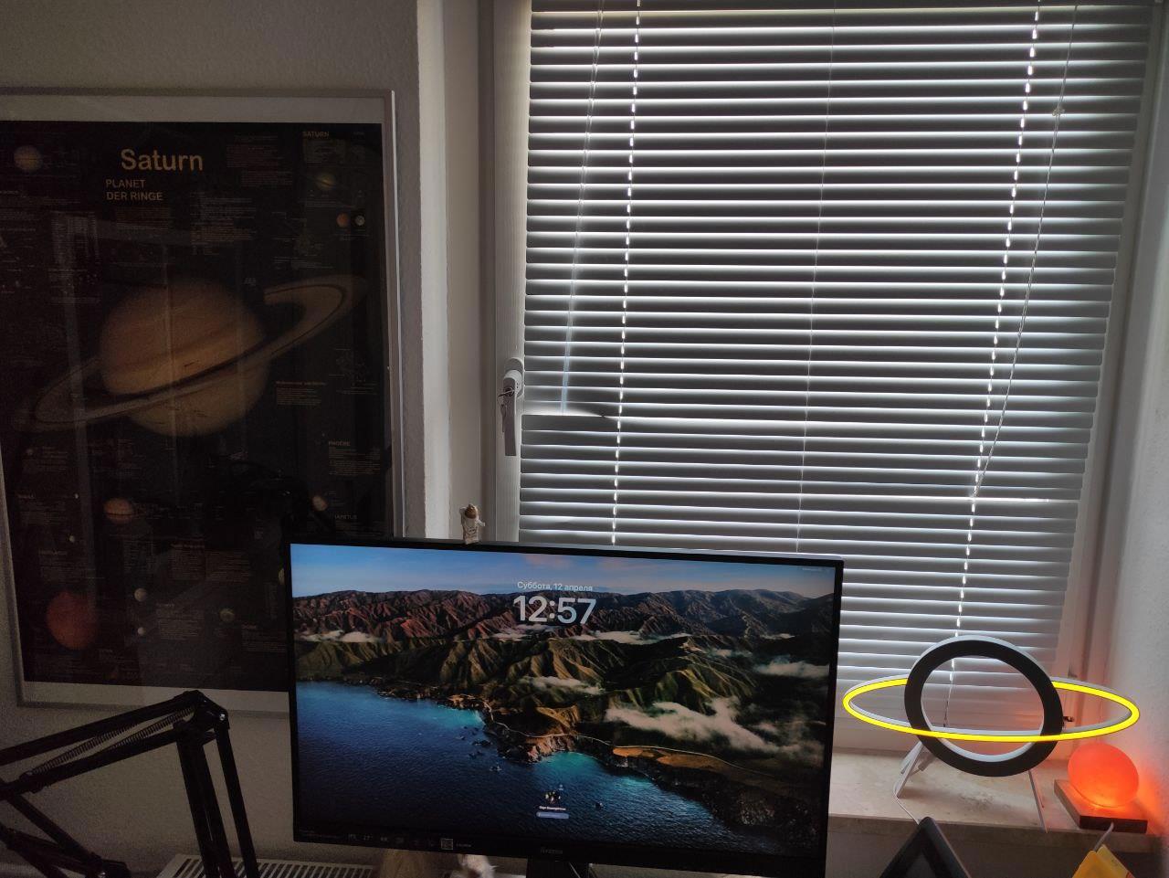 По случаю праздника повесил напротив рабочего места плакат с Сатурном.