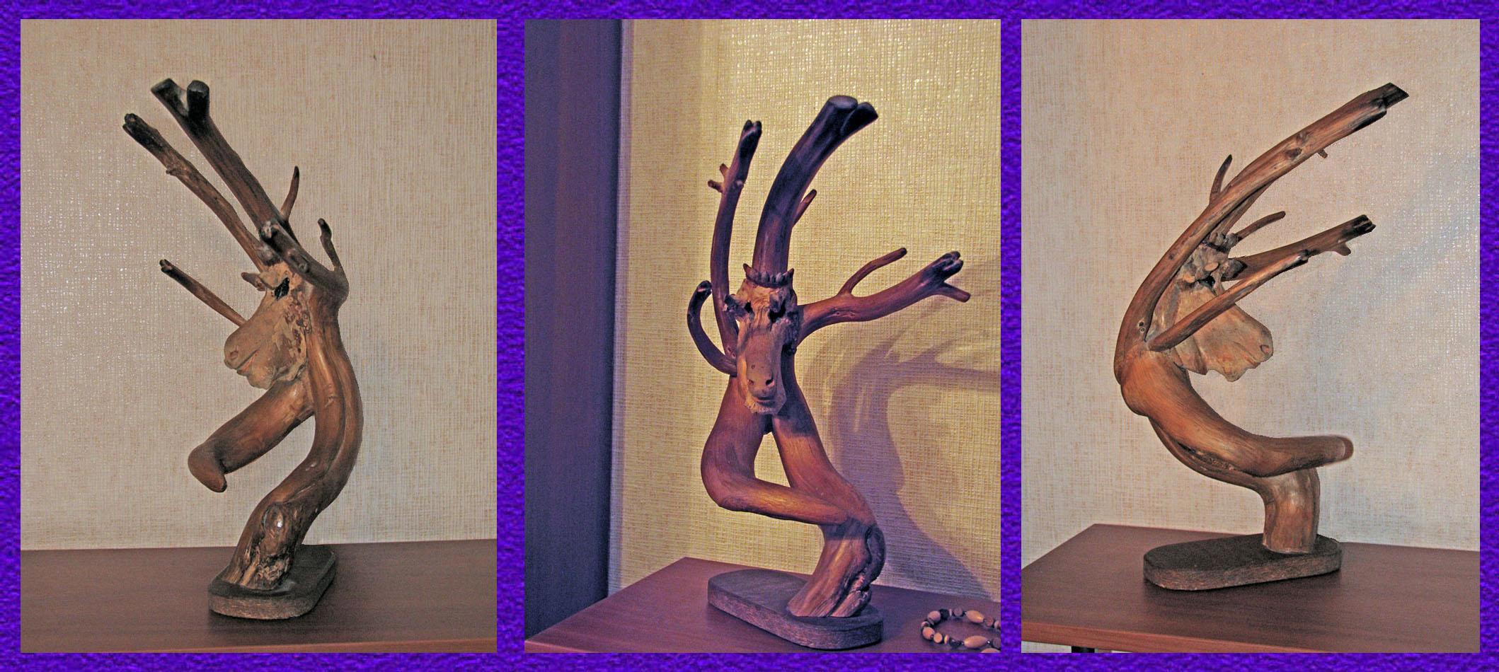 Вот, например, Борис Александрович, мой дед по отцовской линии. Ныне покойный. В войну он руководил здесь, на Урале производством артиллерийских снарядов. Его не пустили на фронт, хоть и просился - сочли, что здесь он нужнее. И верно: он был не только хорошим руководителем, но и первоклассным техническим специалистом и много пользы принес фронту. А еще у него было два хобби: пиротехника (в 50-е,60-е и70-е годы он делал здесь потрясающие фейерверки) и поделки из дерева. Вот как раз последние и стали поводом для этой записи. Я любил бывать у него: квартира деда, благодаря его поделкам, была похожа на музей, в котором я просто пропадал. А еще он очень много знал и был замечательным рассказчиком. Деда я вспоминаю довольно часто, но один гарантированный мнемон в неделю он от меня получает точно - когда я вытираю пыль в квартире, в том числе и с тех классных вещей, которые он творил из простых найденных в лесу сучков и коряг. Фотографии его поделок прилагаю.