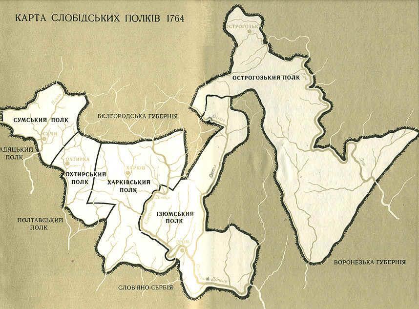 Слобожанщина располагалась на территории современной Харьковской области, а также районов Донецкой, Луганской и Сумской областей, плюс части Белгородской и Воронежской:
