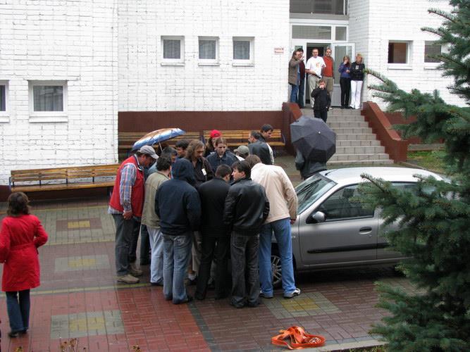 Парочка фотографий с фестиваля. Помните анекдот, почему люди не занимаются сексом на городской площади - потому что советами замучают? Вот наглядная иллюстрация к этому анекдоту: у кого-то из фантастов не заводилась машина.