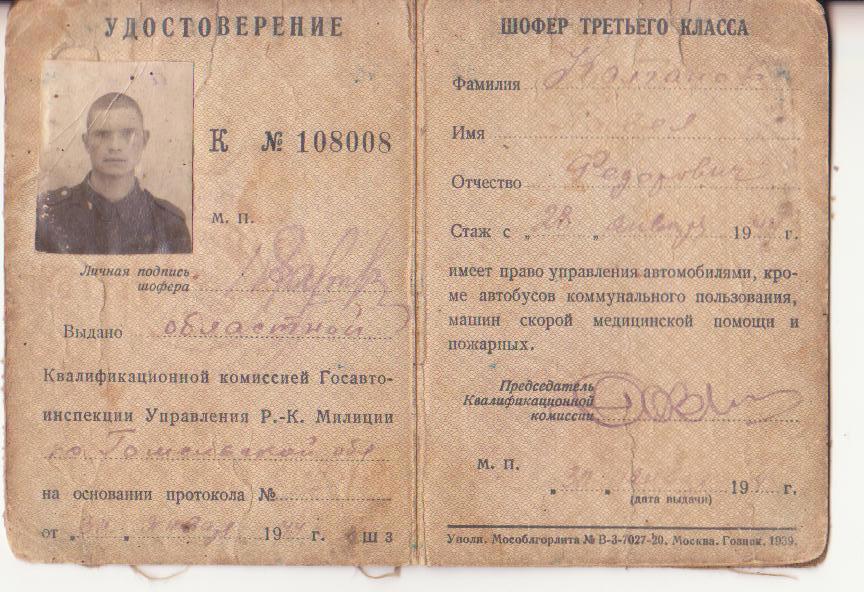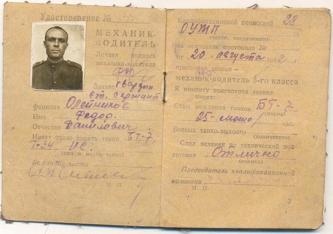 Кстати, и у мехвода танка или самоходки тоже было удостоверение, «механик водитель 3 класса» и для его получения тоже надо было сдавать экзамен. И сдаётся мне, что был он ничуть не легче того, что выдерживали шоферы.
