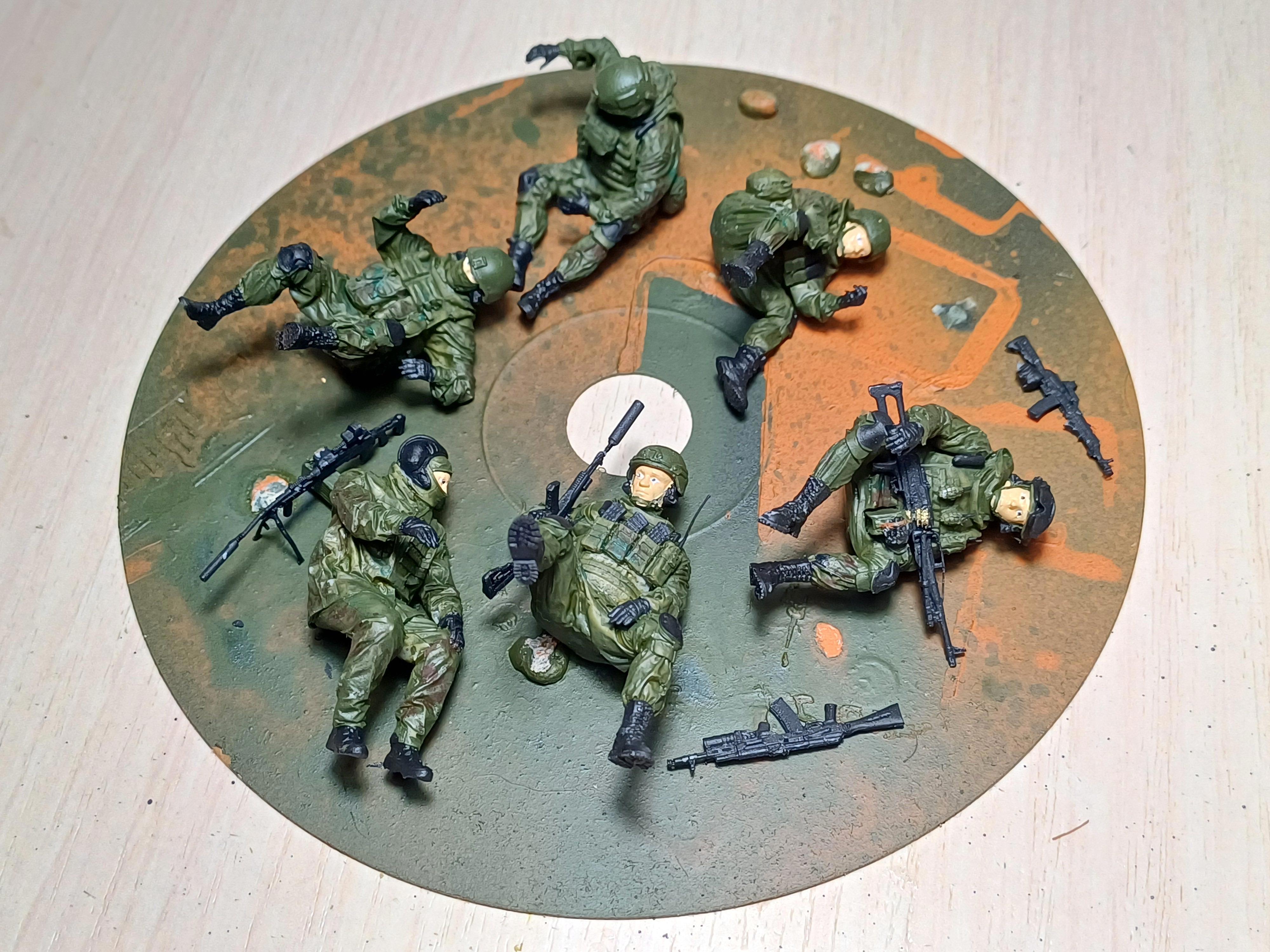 Ну и чтобы закончить на позитивной ноте - диорама худо-бедно движется. Десант на танк практически готов: