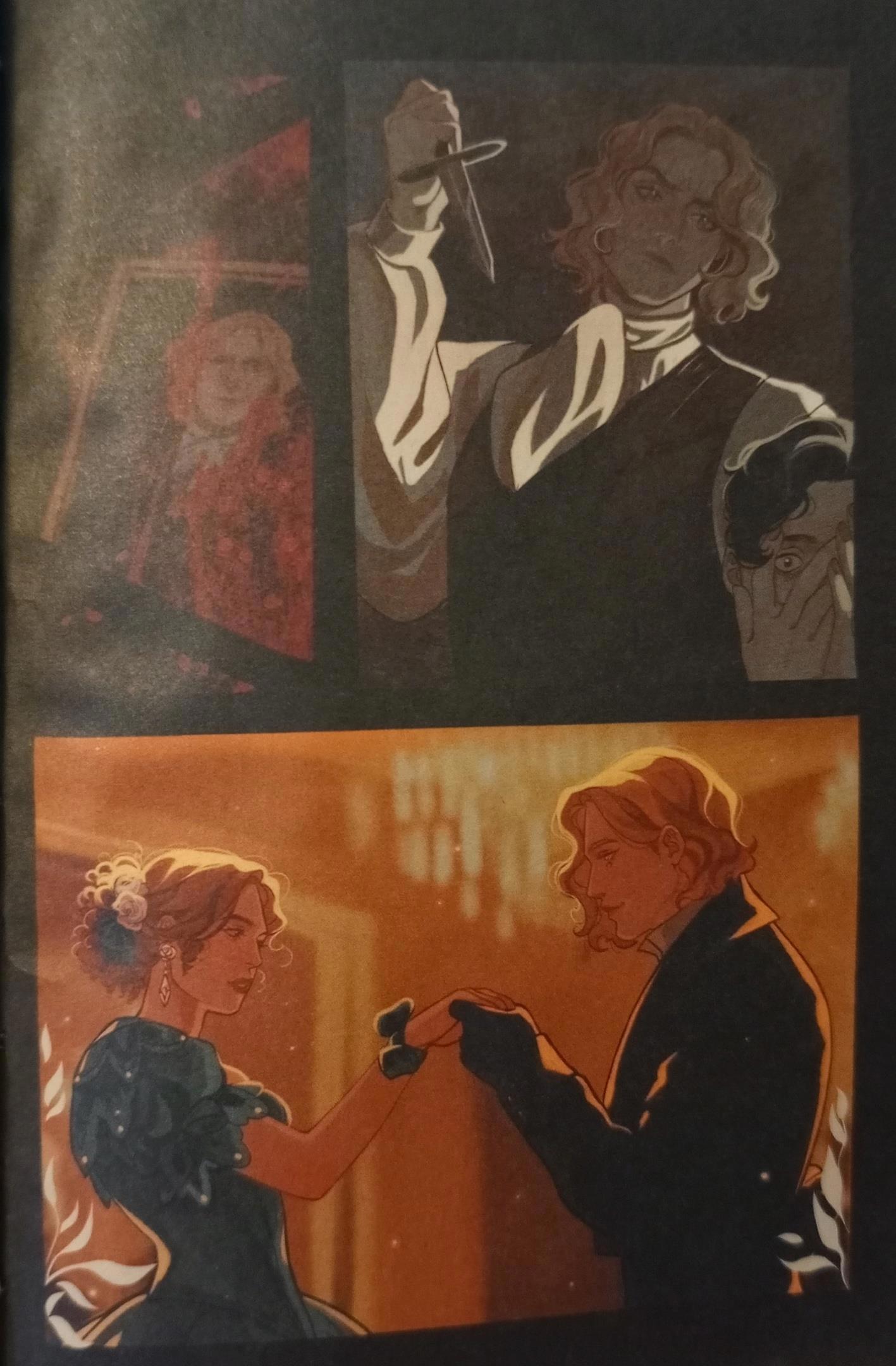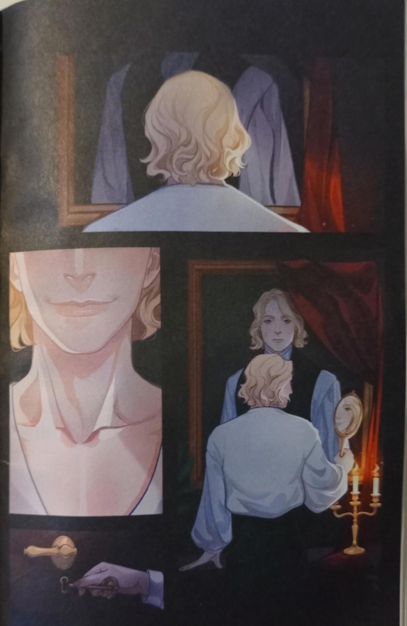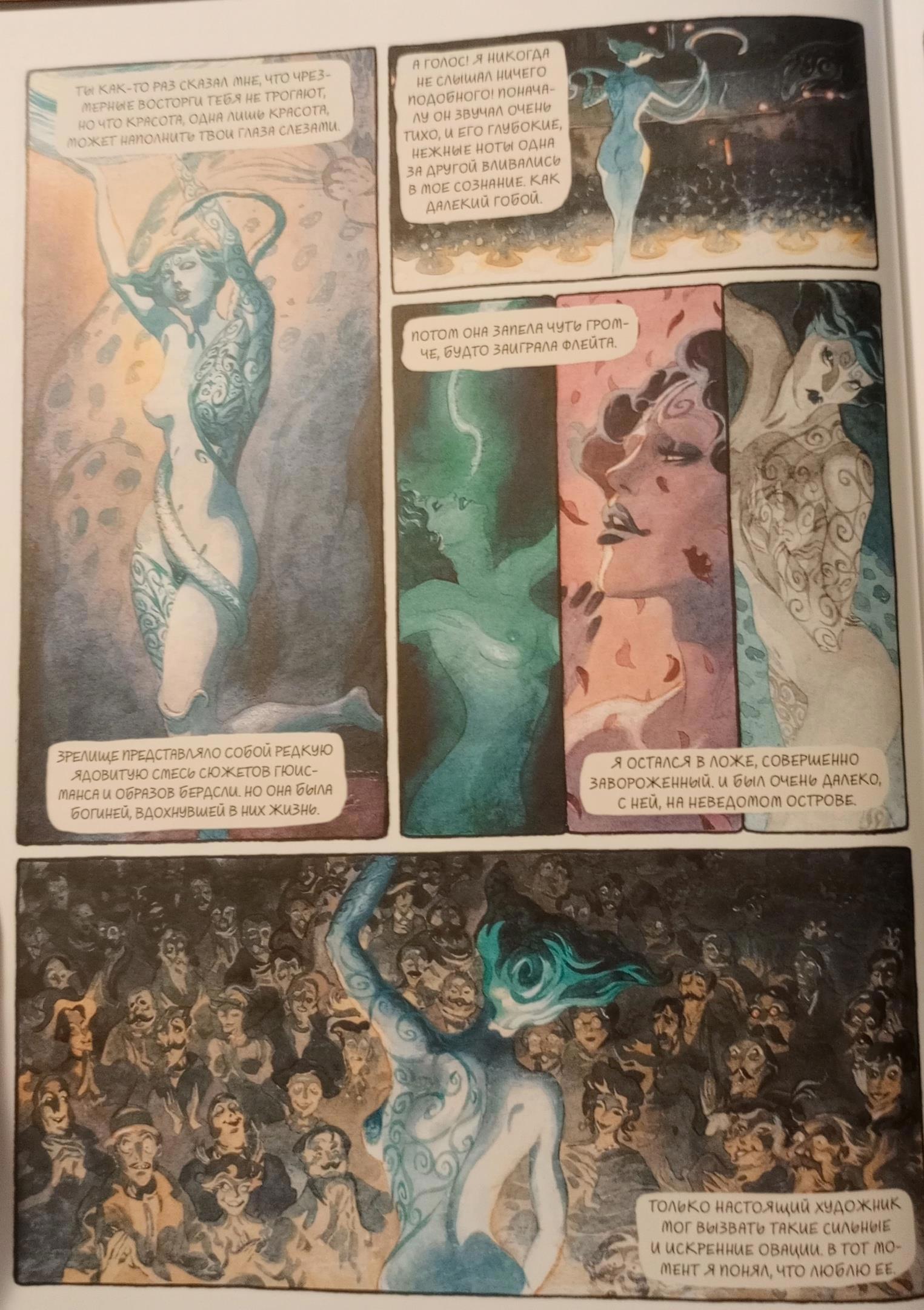 Теперь хочу поговорить об изданиях этого романа. Я приобрела издание с иллюстрациями. Именно их я вставляла выше. А ещё я купила комикс по мотивам романа. Именно что по мотивам. Его нарисовал французский художник и решил немного осовременить роман. И это яркий пример того, как писать не надо! И пример того, как можно испортить великолепный роман. Художник решил обнажёнки добавить, и это просто крах. Сибил, танцующая голой перед мужиками на сцене театра, - это-то в викторианской Англии? Там даже слово "любовница" ("mistress") цензура изъяла из романа, не то что кто-то бы в Лондоне устраивал эротическое шоу на сцене театра. И я ни разу не поверю, что стриптизёрша бы покончила с собой из-за мимолётного романа, пусть и с представителем высшего света. А в финале Дориан вообще после наркотусовки у Гарри вдруг обнаруживает себя голым возле своего портрета... Но картинки да, в комиксе интересные. Хоть книга имеет рейтинг 16+, картинки я всё равно спрячу под спойлер 18+.