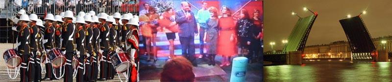 В начале девяностых скучно в России не было и вдобавок, не все романтики еще вымерли. Так что когда нашу Фирму пригласили принять участие в Токшоу на Питерском ТВ и не только как спонсора, но и полноценного (с ума сойти) участника, то мы все хором сказали Есс! Я написал сценарий нашего рекламного блока и разработал ряд роялейи фортепьян в кустах. С собой мы везли все необходимое для процесса, в том числе раздатчиков сувениров и случайных зрителей из толпы, ибо сказано - хочешь сделать хорошо, сделай сам. Передача делалась в записи и когда мы, пылая деловым энтузиазмом прибыли в град Петров на Неве, телевизионщики нас обрадовали сообщением, что свободная студия будет только после завтра. Кто помнит, в те времена жидкое КЦ типа баночного пива и Амаретто, продавалось исключительно в ларьках. А хорошая закуска исключительно на рынках. Так как получился неожиданный отпуск, мы естественно начали его праздновать, и в преддверии ужина немного потренировались, а когда все кончилось решили начать готовиться к ужину. Недалеко от Гостинки был рынок, ну а ларьки были тогда на каждом углу. Короче к рынку, мы подошли уже в самом благостном настроении и когда перед входом увидели маленький духовой оркестр, оказалось что это очень в жилу. Оркестру была дана оплаченная команда играть Прощание Славянки, пока мы не выйдем назад с рынка и мы приступили к закупкам. На рынке тоже было весело, но не все продавцы были адекватны к нашему настроению. Когда я, увидя копченые куриные бедрышки, вежливо спросил у знойной негоциантки, мол девушка по чем ваши бедра ? То в ответ был обвинен в хамстве и сексуальных домогательствах. Друзья и коллеги, естественно очень высоко оценили мою методику ухаживания, и долго еще меня прикалывали. Кстати на счет юмора...
